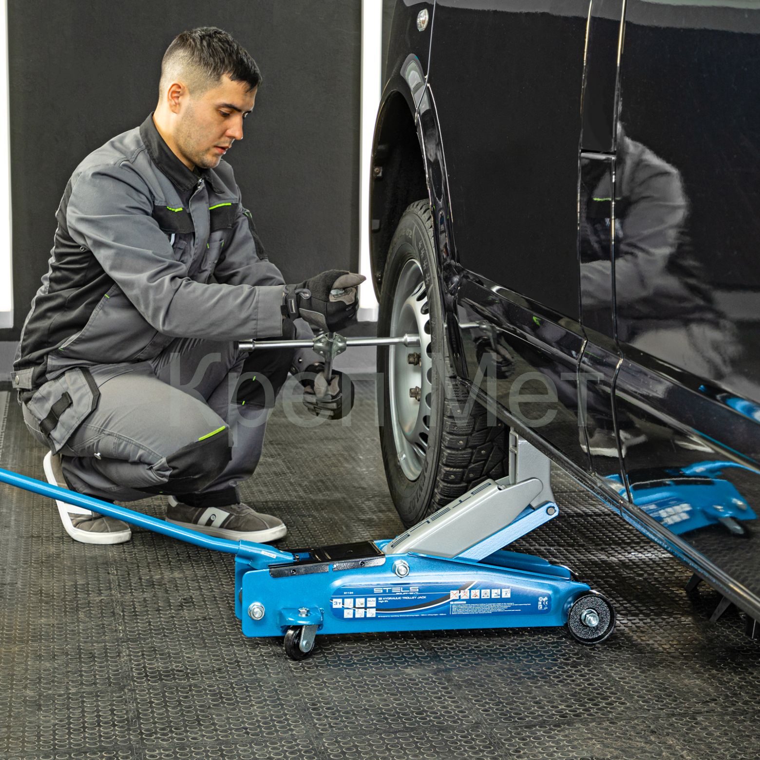 Подкатной гидравлический домкрат Stels 51134 с высоким подъемом 190 мм позволяет поднимать грузы весом до 3 т на высоту 535 мм и подходит для автомобилей класса SUV с увеличенным дорожным просветом. Может использоваться для самостоятельного обслуживания авто.
