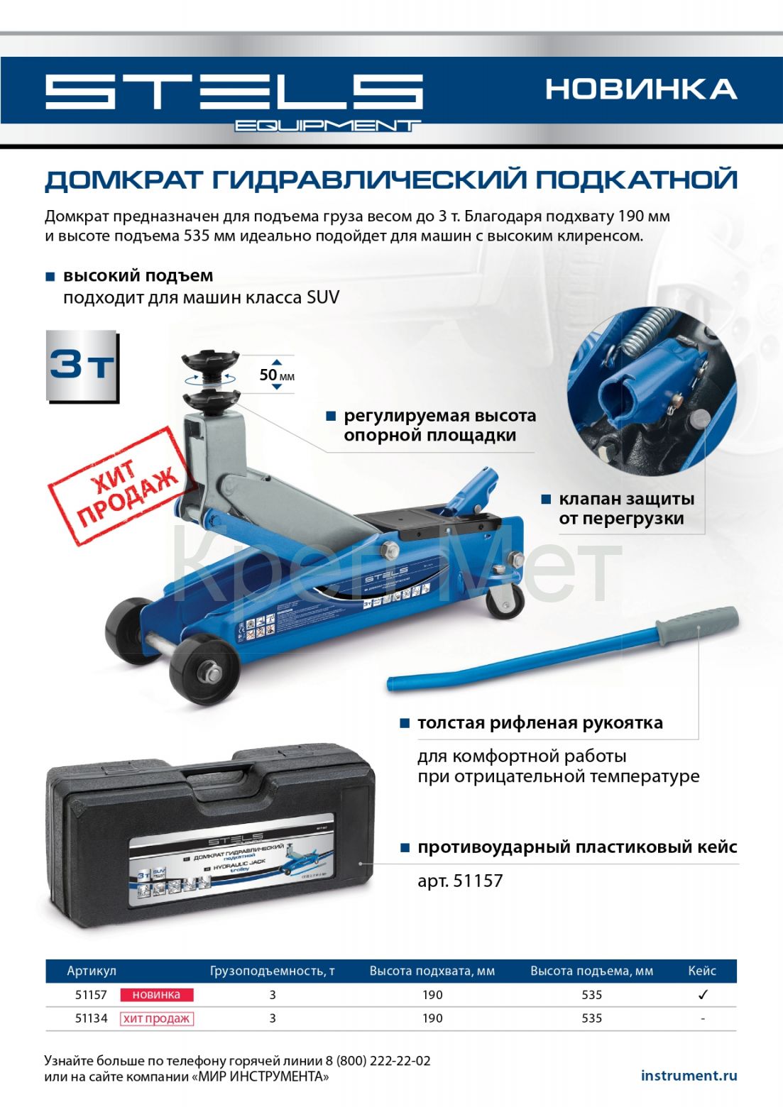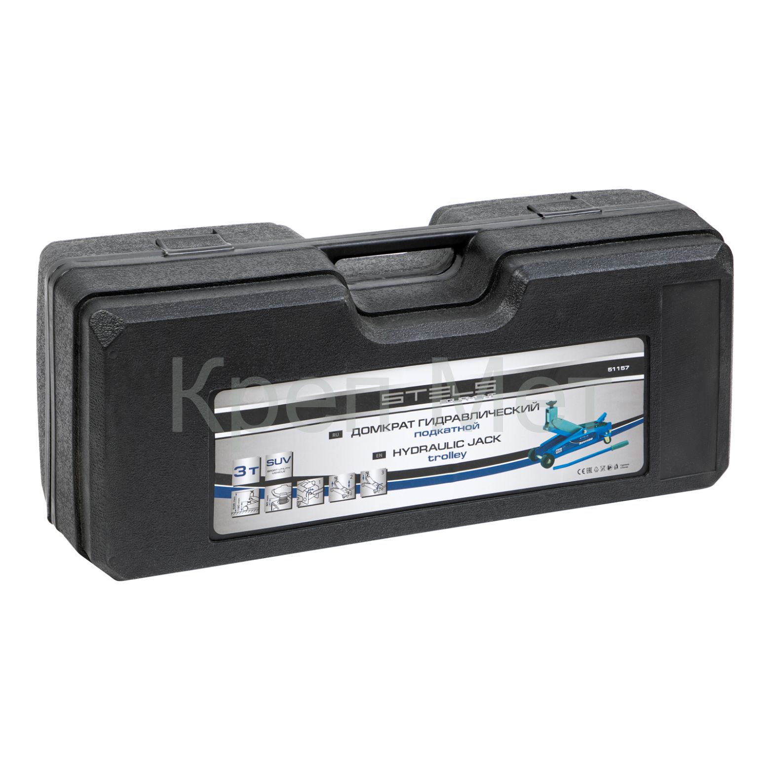 - Домкрат гидравлический подкатной, высокий подъем, 3т, SUV, 190-535 мм, в кейсе Stels