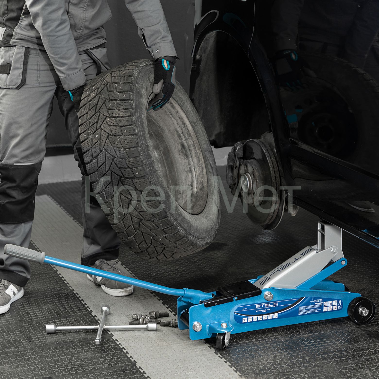 Подкатной гидравлический домкрат Stels 51157 с высоким подъемом 190 мм позволяет поднимать грузы весом до 3 т на высоту 535 мм и подходит для автомобилей класса SUV с увеличенным дорожным просветом. Может использоваться для самостоятельного обслуживания авто.