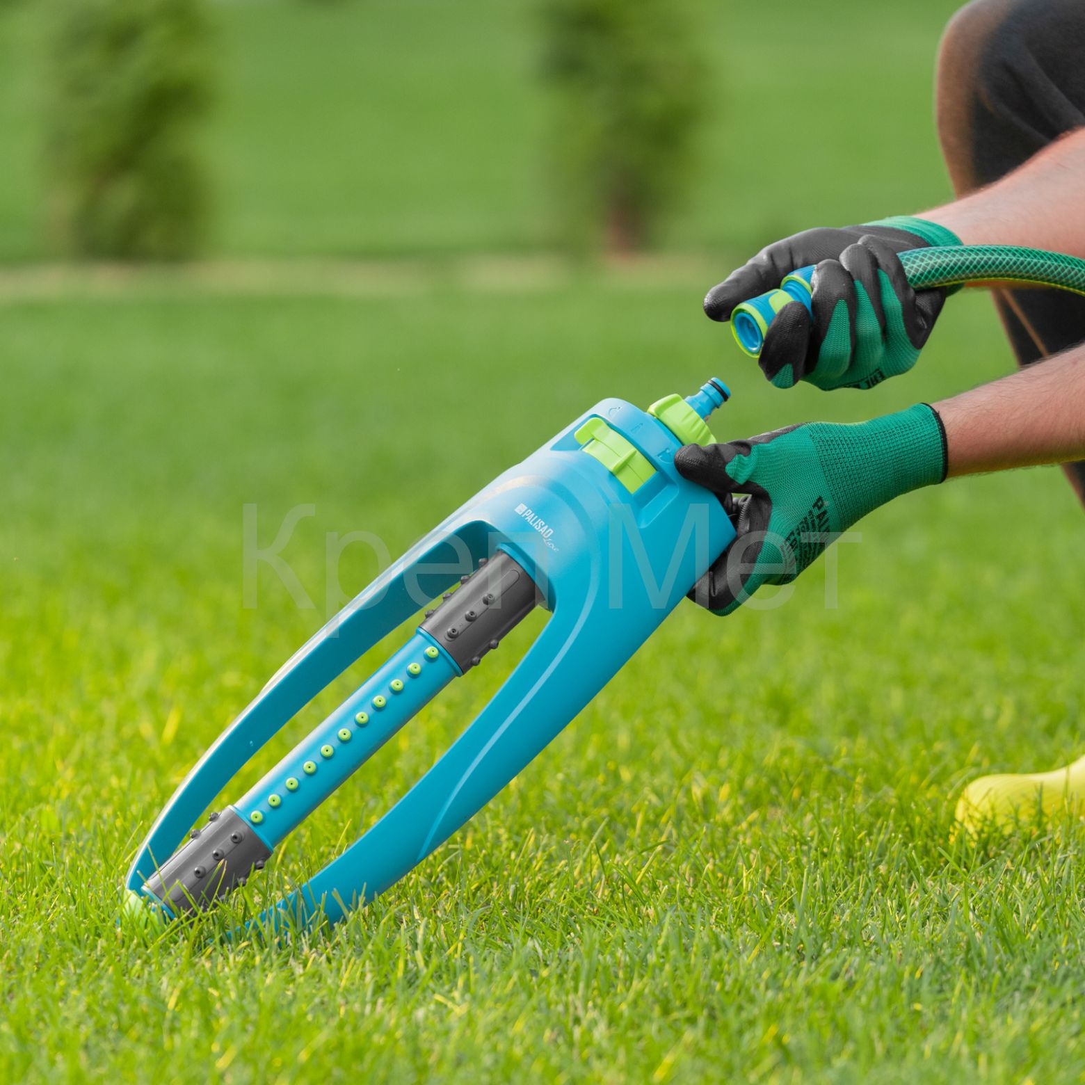 - Быстрое подключение — дождеватель имеет универсальный штуцер, совместимый с коннекторами всех поливочных систем Palisad и Palisad Luxe.