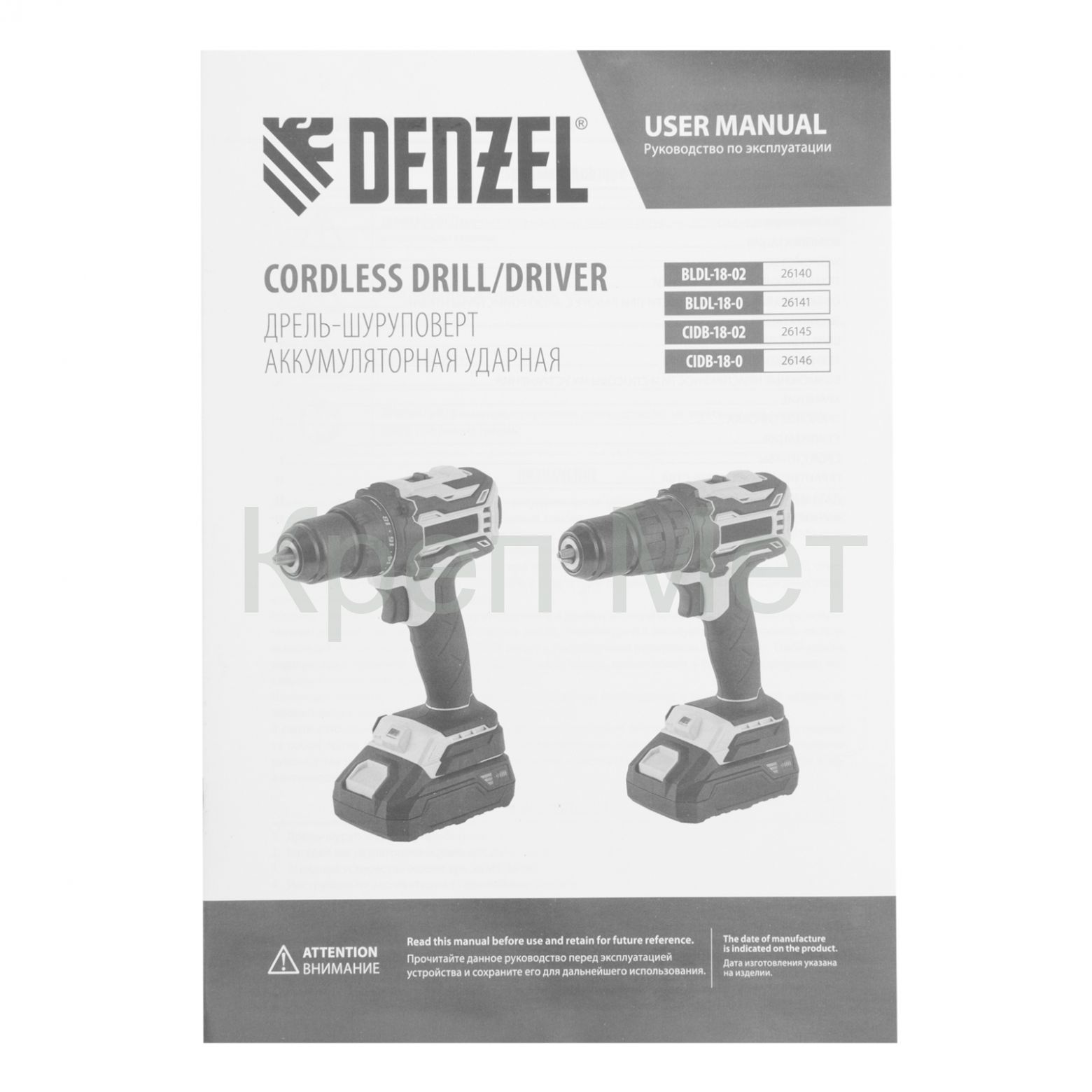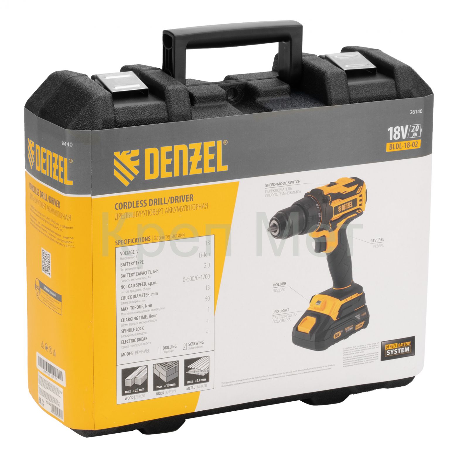 - Дрель-шуруповерт аккумуляторная, бесщет. BLDL-18-02 Li-Ion, 18 В Denzel