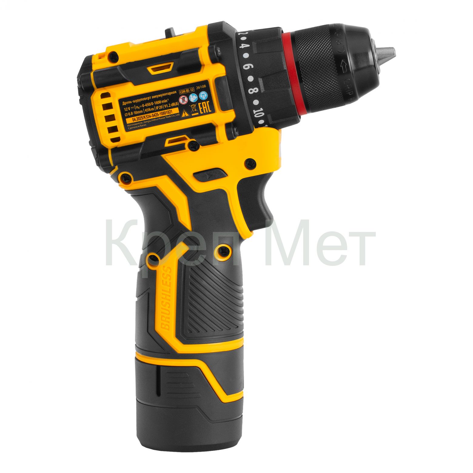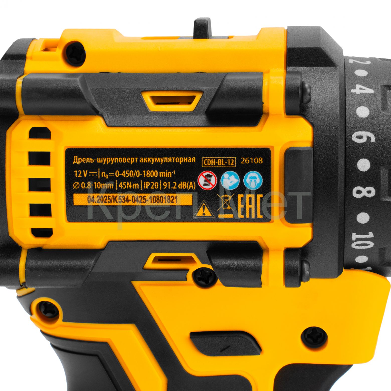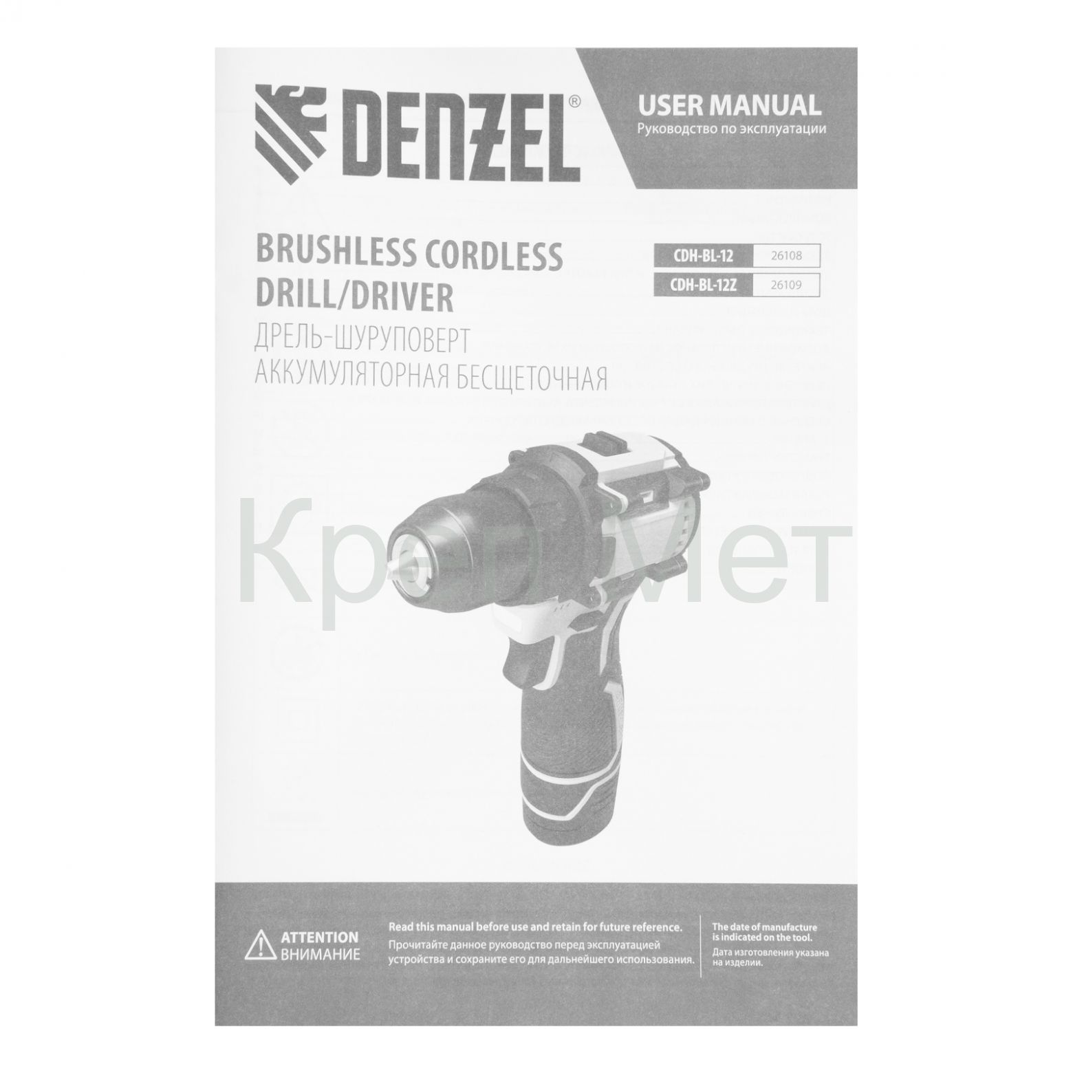 - Дрель-шуруповерт аккумуляторная бесщет. CDH-BL-12, Li-Ion, 12 В Denzel