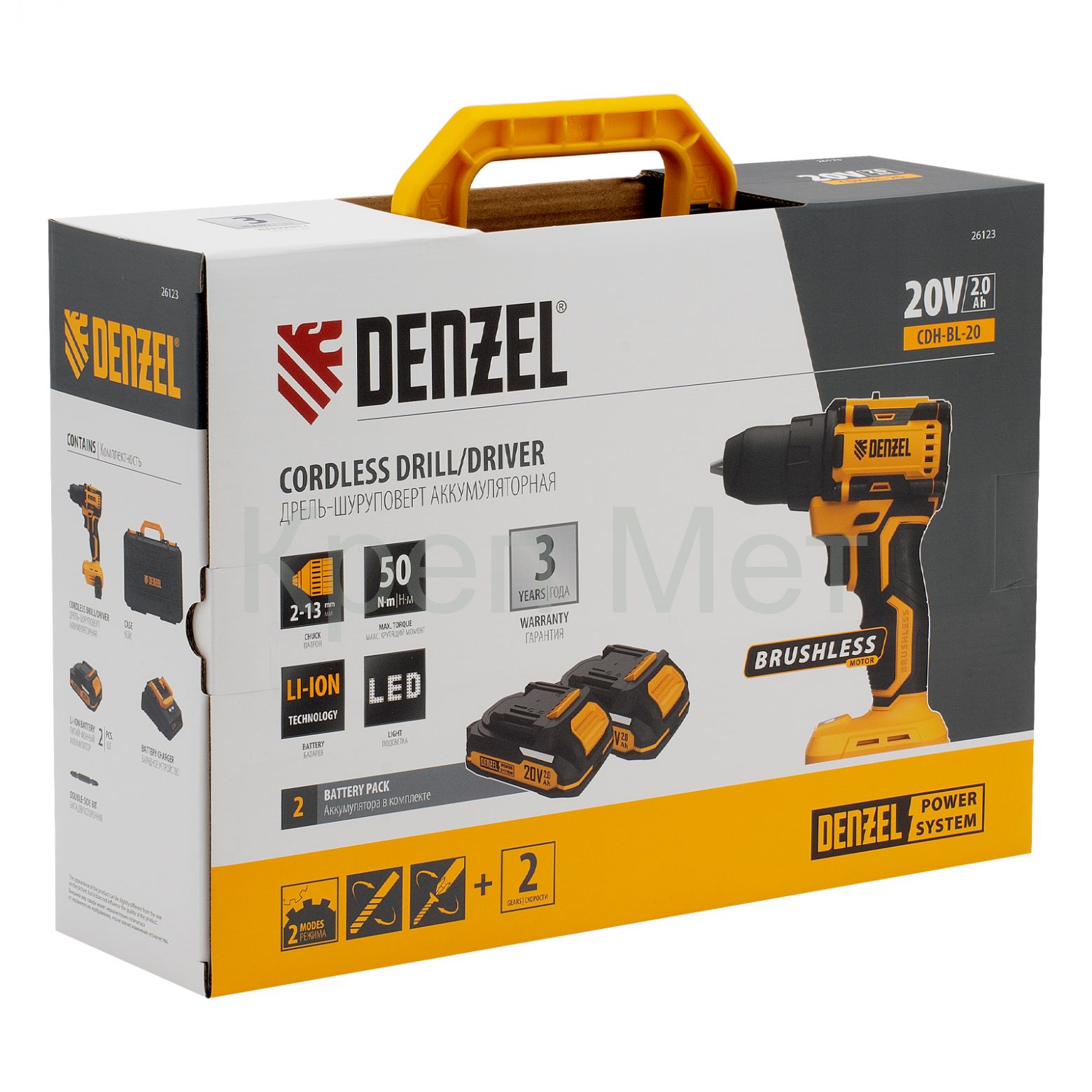 - Дрель-шуруповерт аккумуляторная бесщет. CDH-BL-20, Li-Ion, 20 В// Denzel