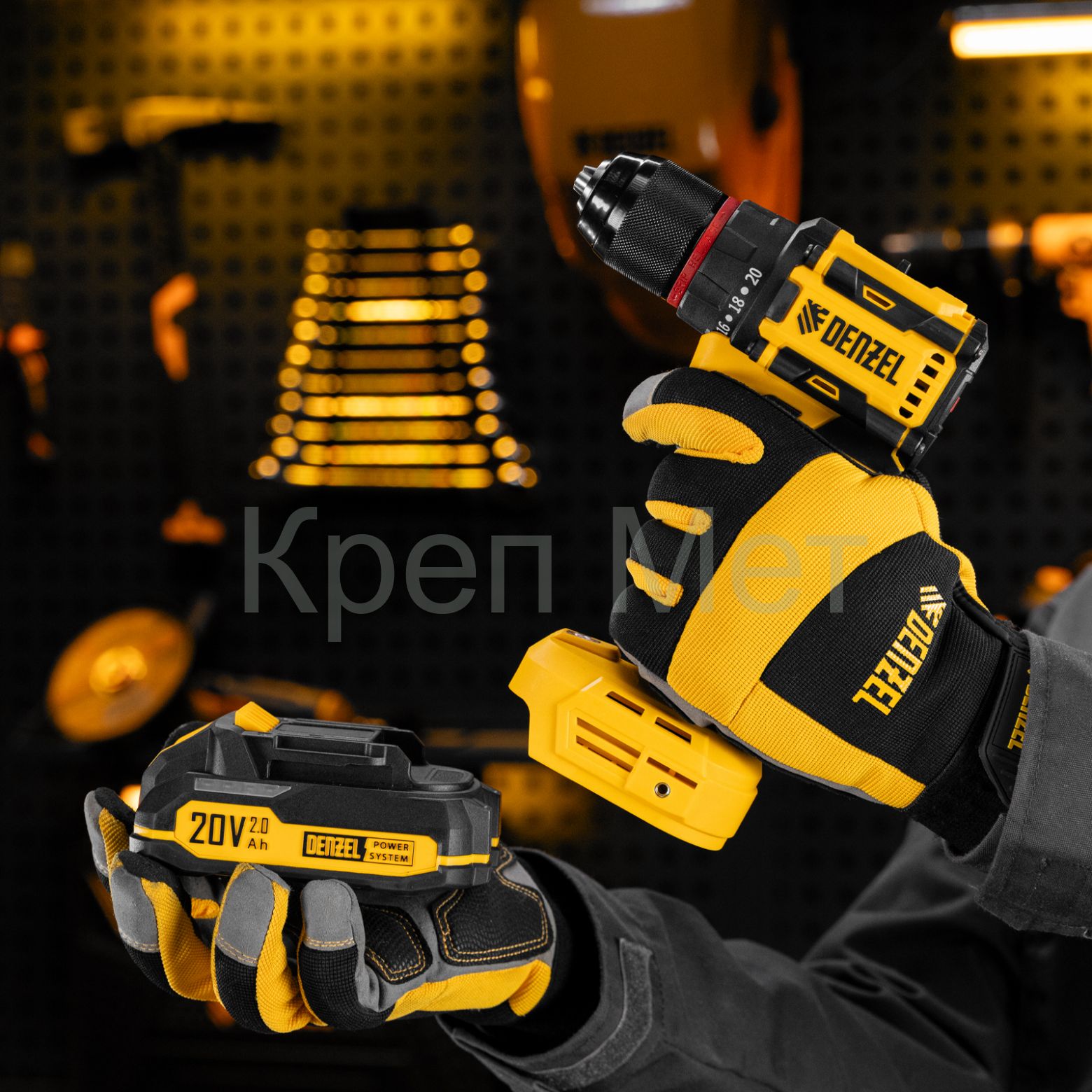- Универсальность — аккумуляторы Li-Ion емкостью 2 А·ч совместимы со всеми инструментами единой платформы Denzel Power System 20V.