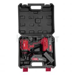 - Надежная упаковка — дрель-шуруповерт с аксессуарами поставляется в прочном кейсе, удобном для транспортировки и хранения.