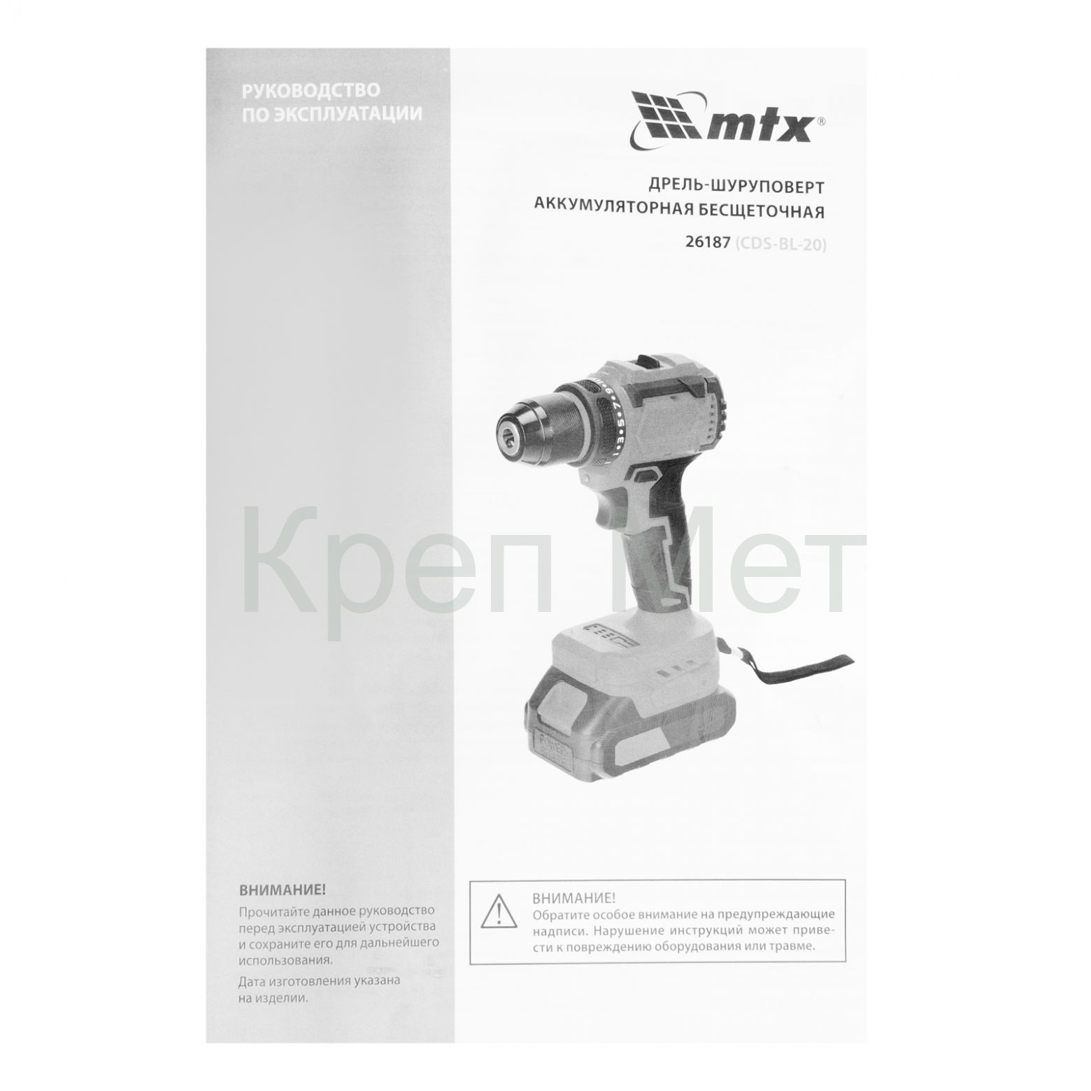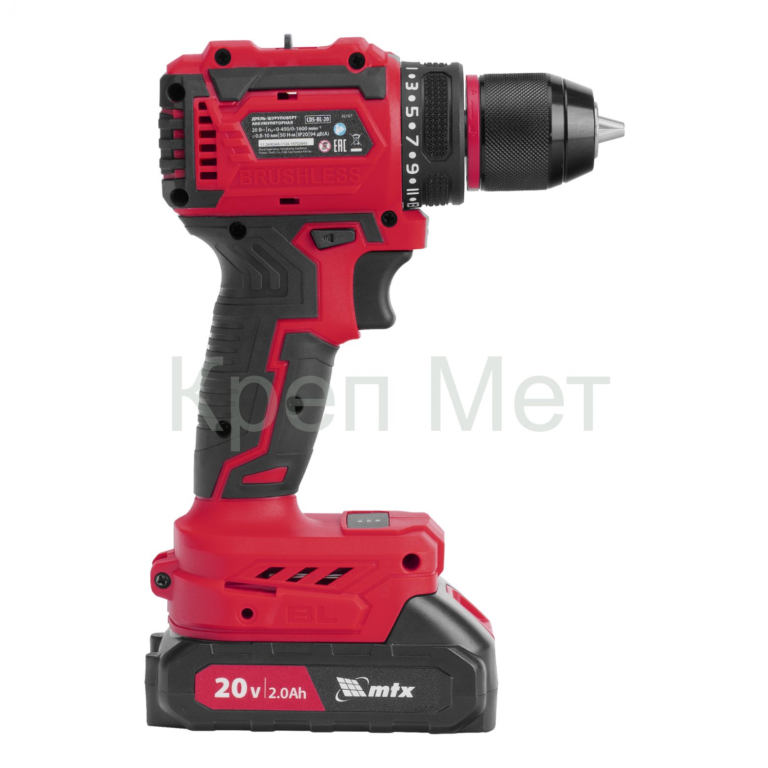 - Дрель-шуруповерт аккумуляторная бесщет. CDS-BL-20, Li-Ion, 20 В// MTX