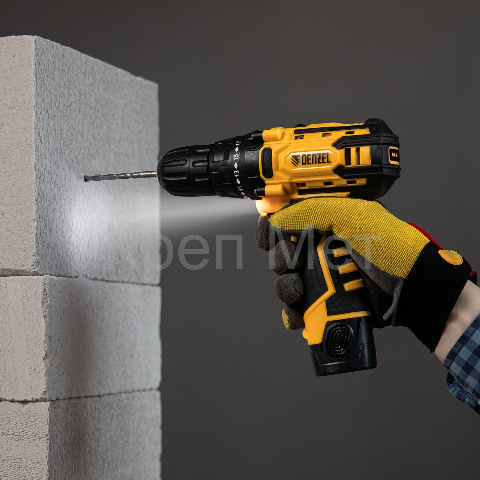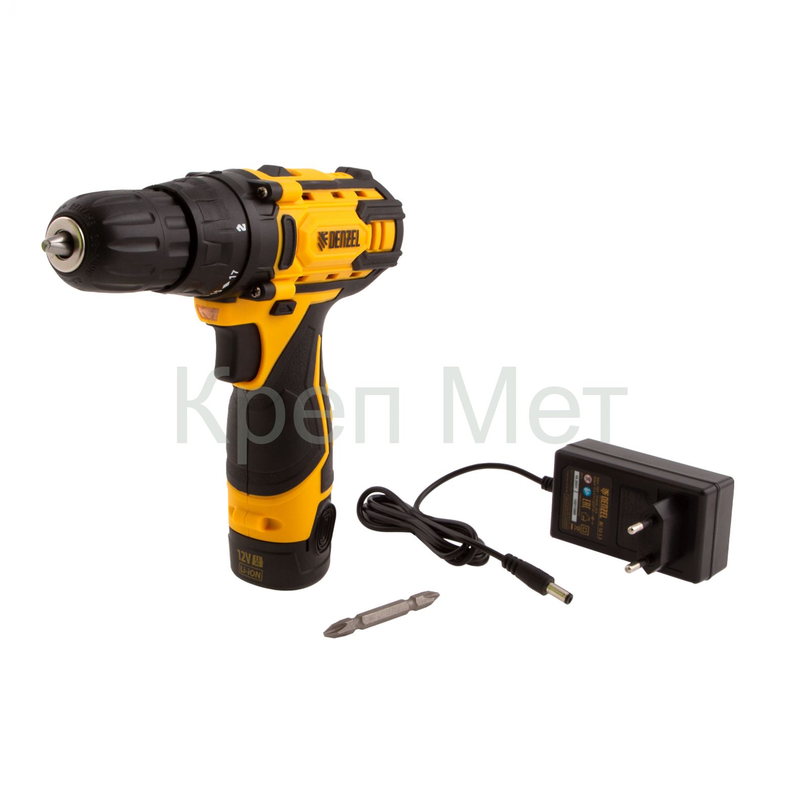 - Дрель-шуруповерт аккумуляторная CDL-12CB, Li-Ion, 12 В, 1 акк. Denzel