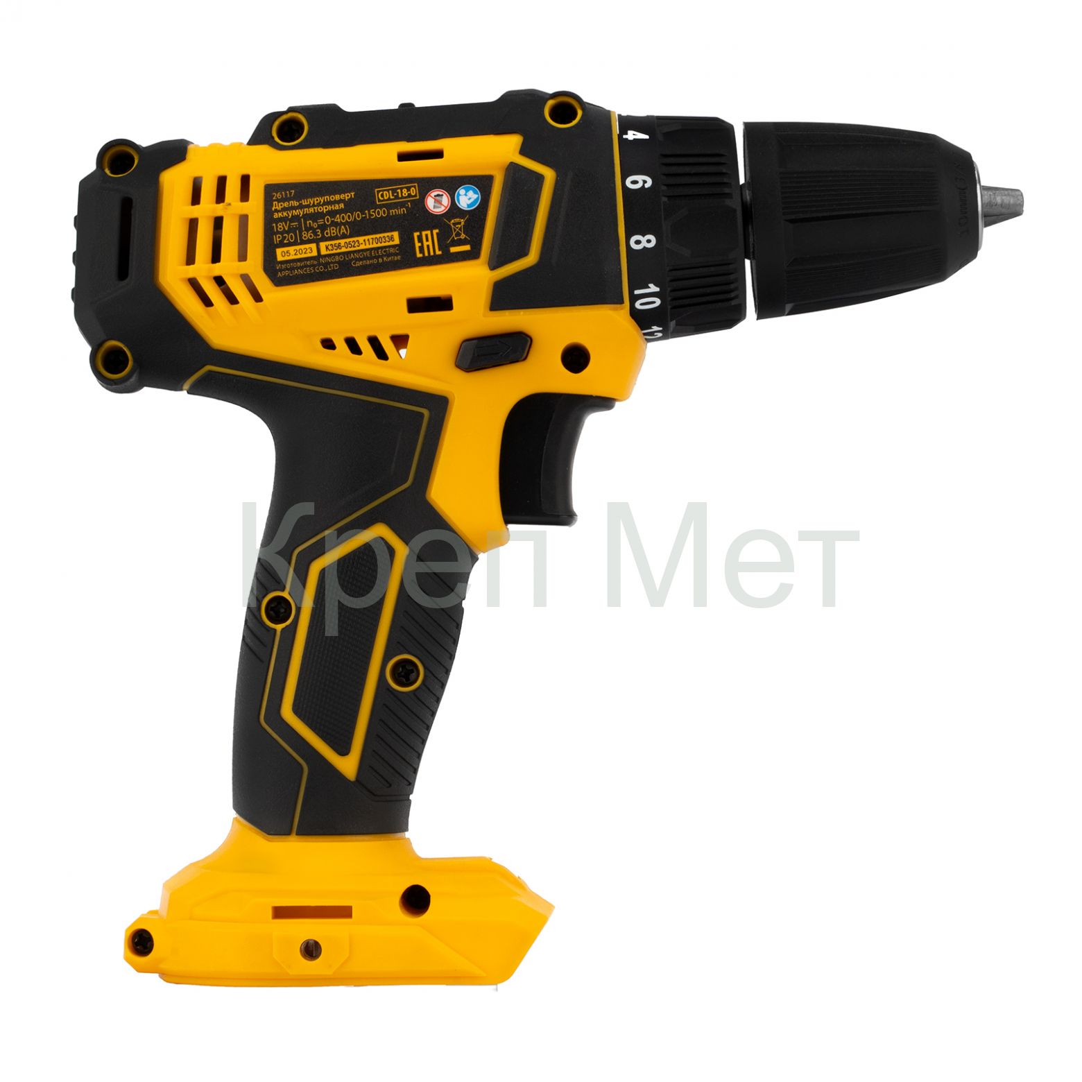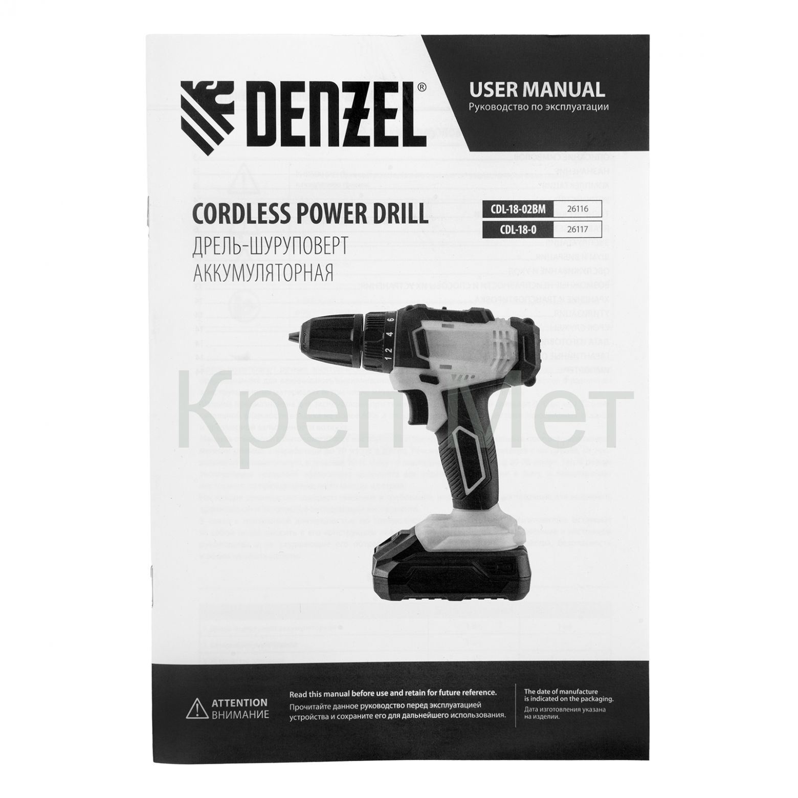 - Дрель-шуруповерт аккумуляторная CDL-18-0, Li-Ion, 18 В Denzel