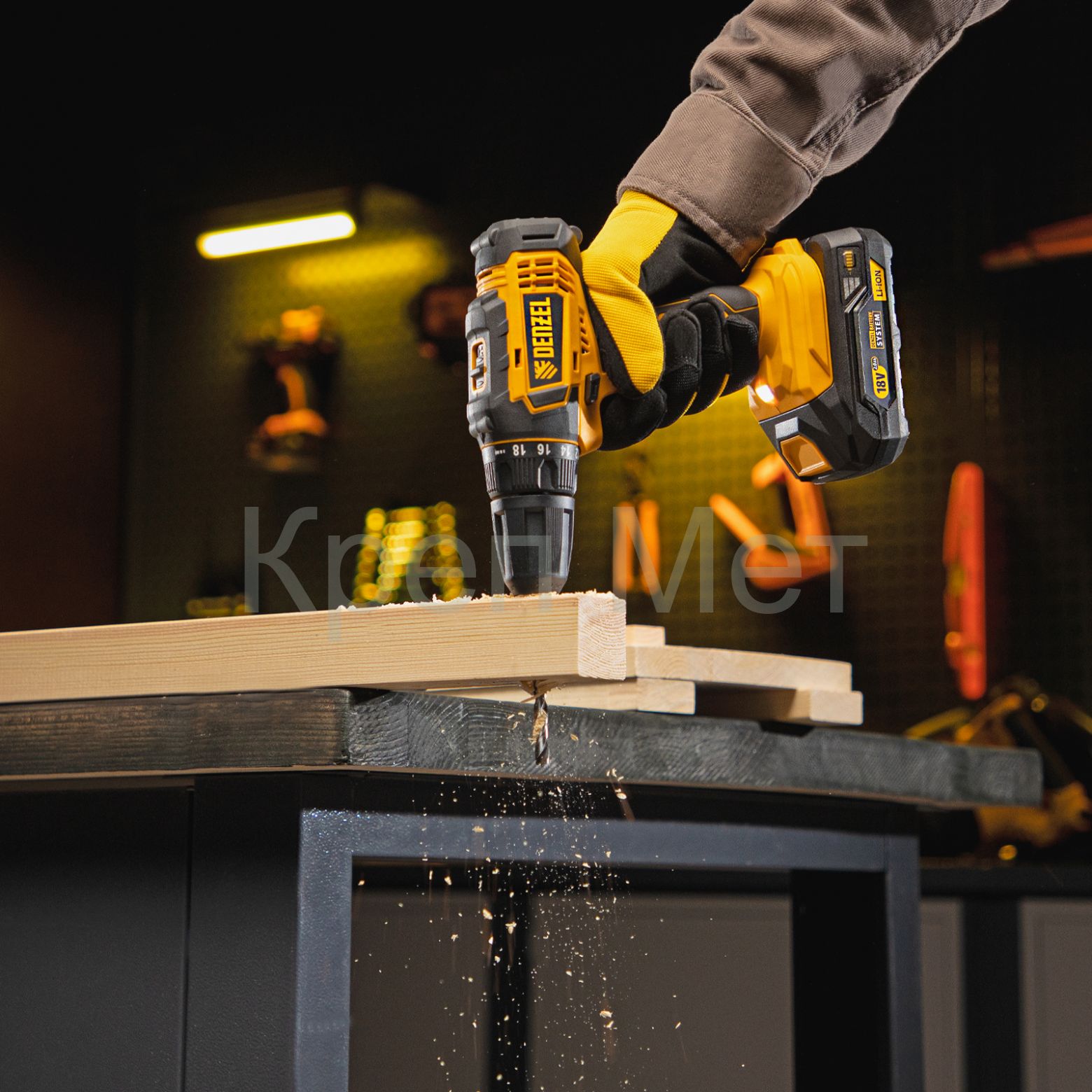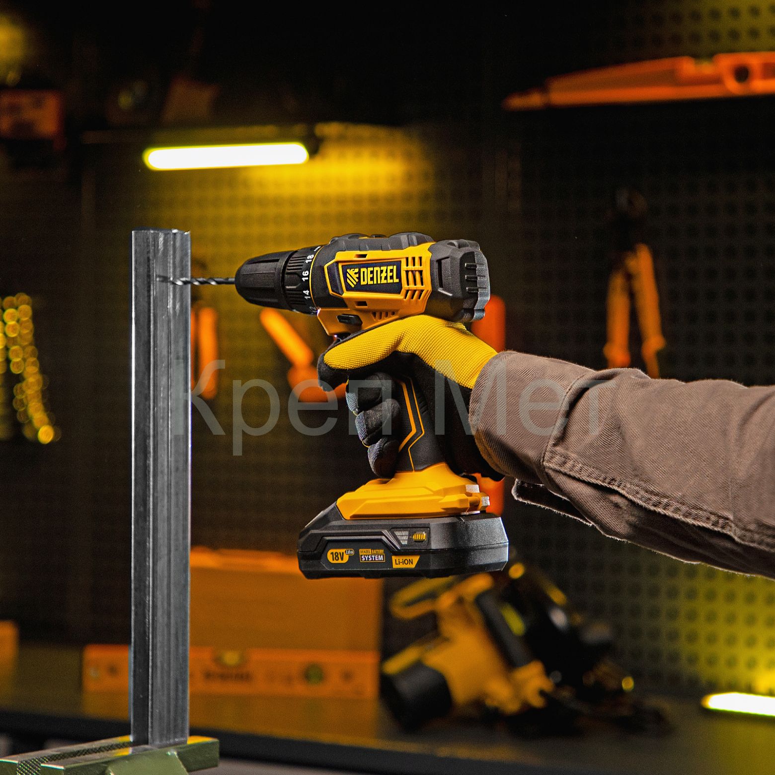 - Универсальность — дрель-шуруповерт совместима с любым Li-Ion аккумулятором единой платформы Denzel Battery System 18V.