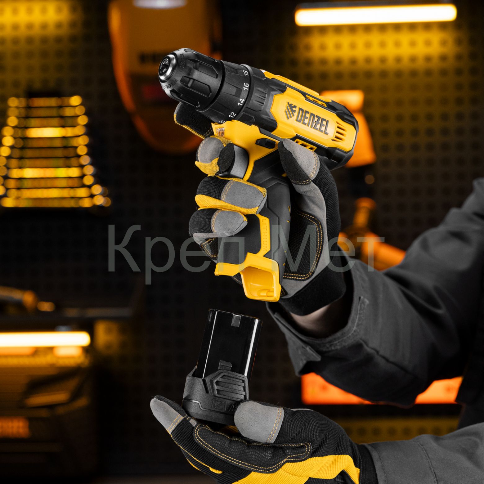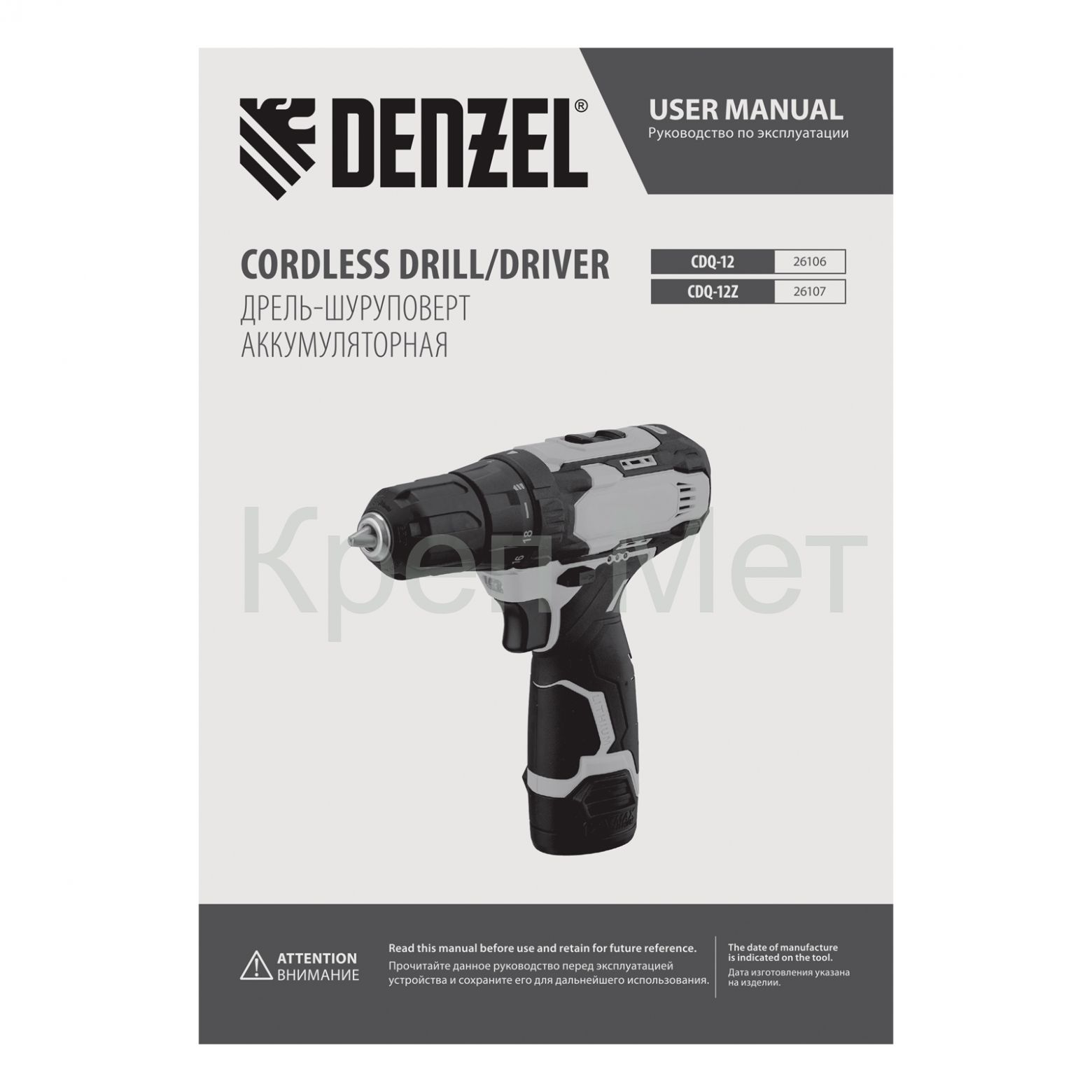 - Дрель-шуруповерт аккумуляторная CDQ-12, Li-Ion, 12 В Denzel