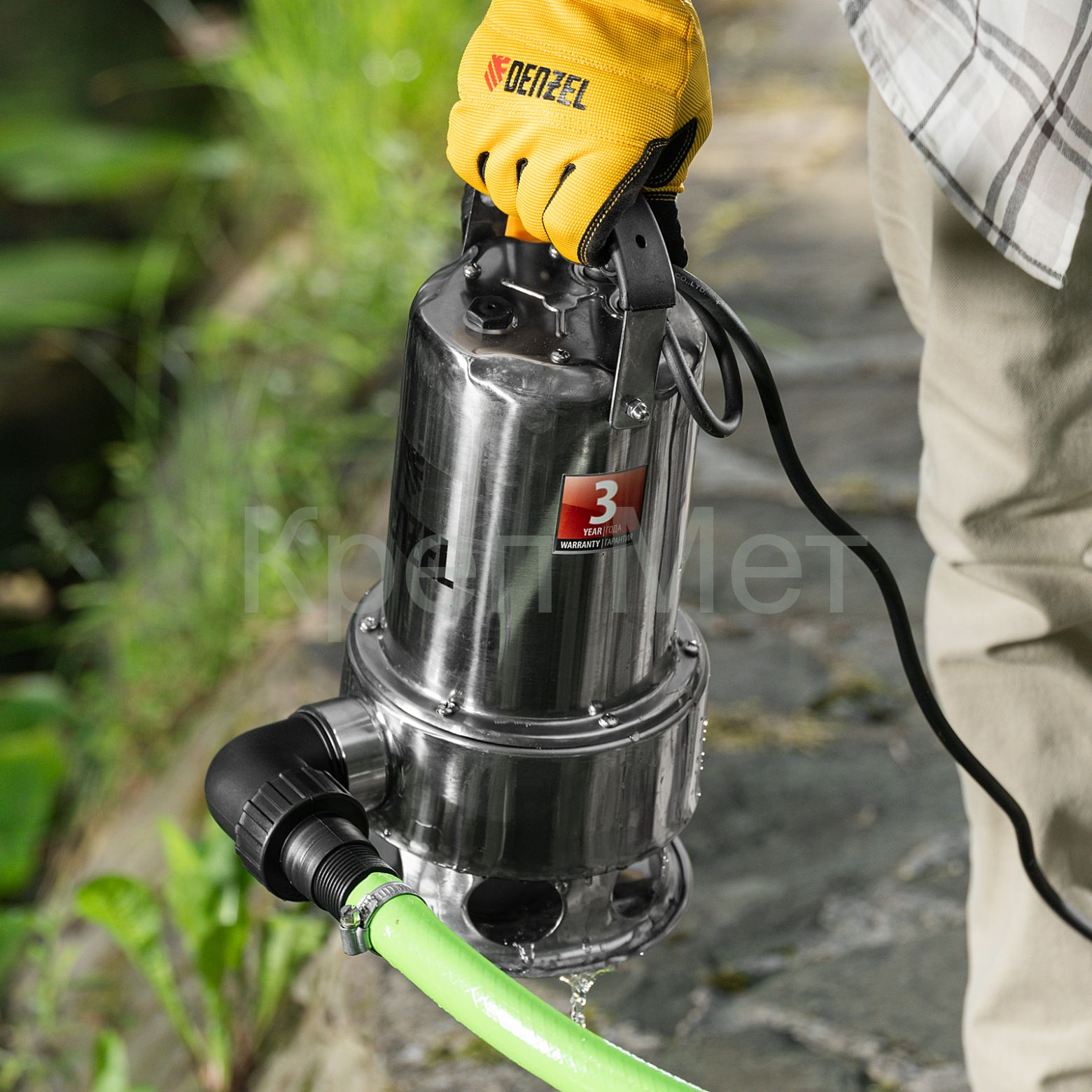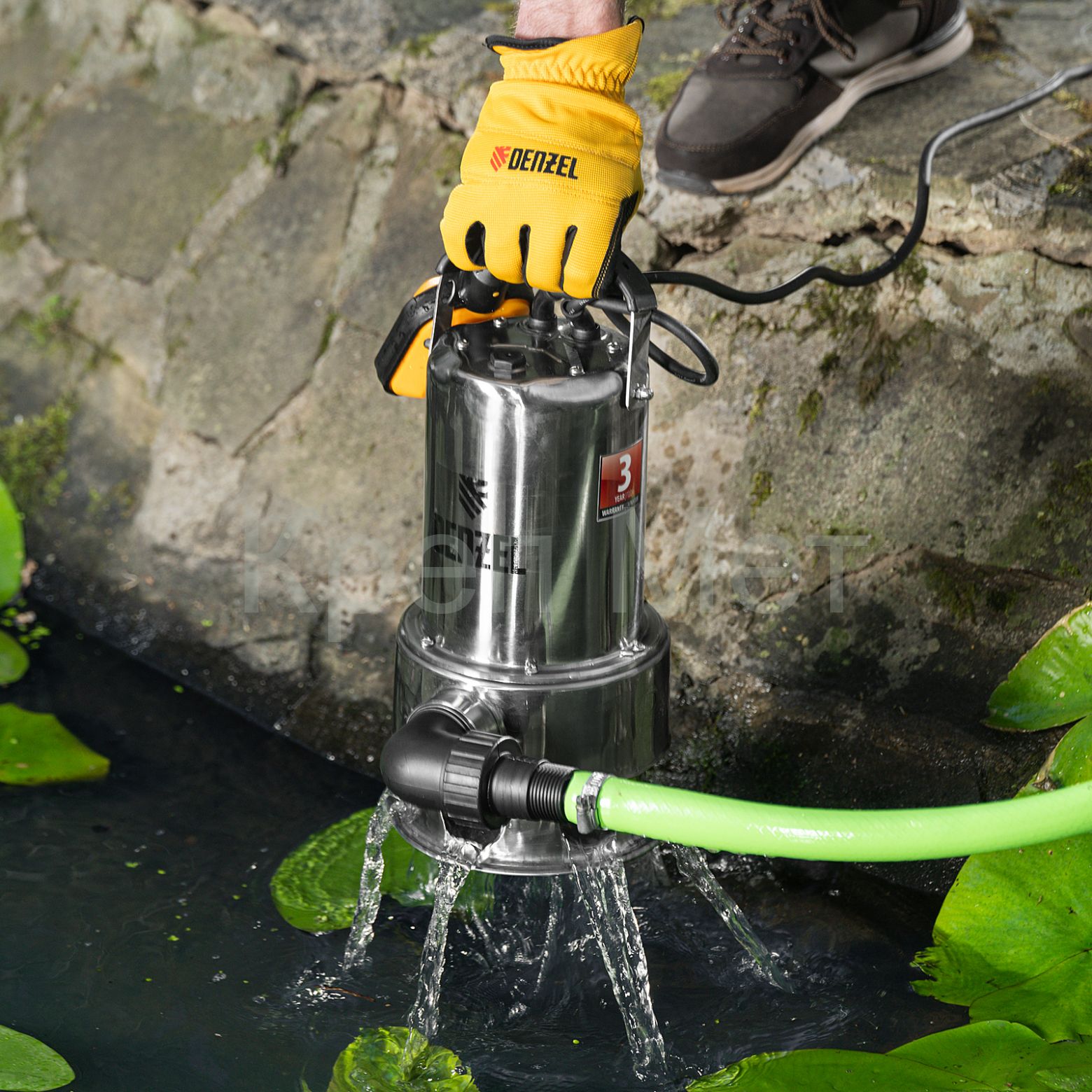 Дренажный насос Denzel DPL800X 97324 мощностью 800 Вт и производительностью 16500 л/ч обеспечивает подъем грязной воды на высоту до 7 м и используется для откачивания сточных вод из затопленных подвальных помещений. Максимальная глубина погружения составляет 7 м. Насос подходит для воды, содержащей твердые и мягкие включения диаметром до 35 мм. Также может использоваться для подачи воды из колодца или открытого водоема с целью орошения сада или огорода.