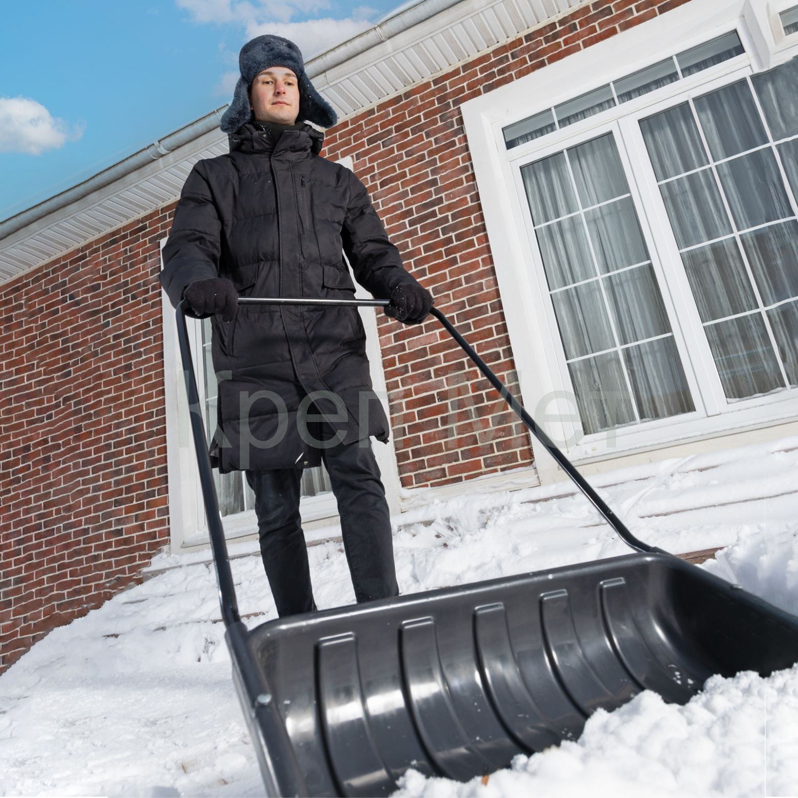 - Движок для уборки снега пластиковый, 690х470х1420 мм, стальная рукоятка, Сибртех