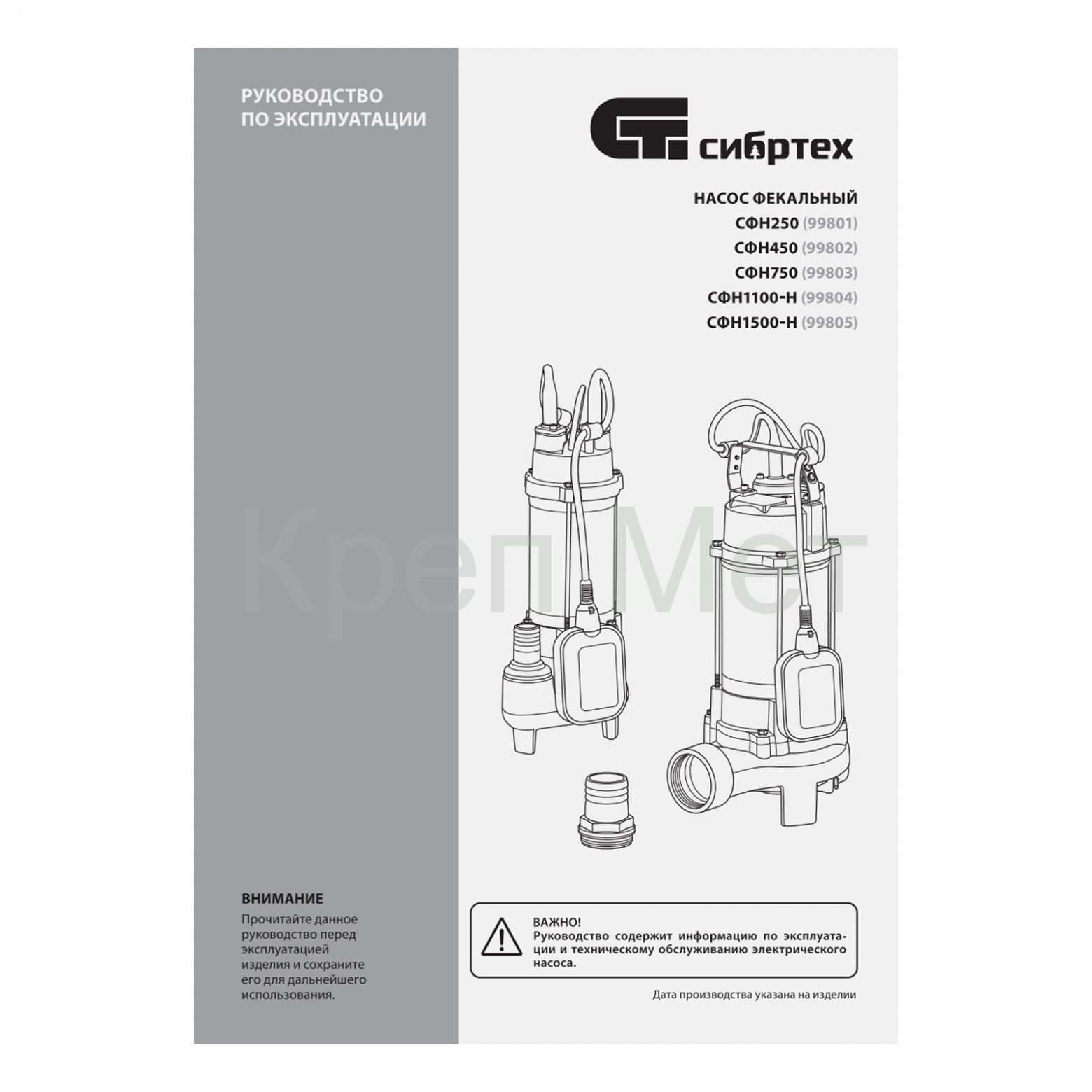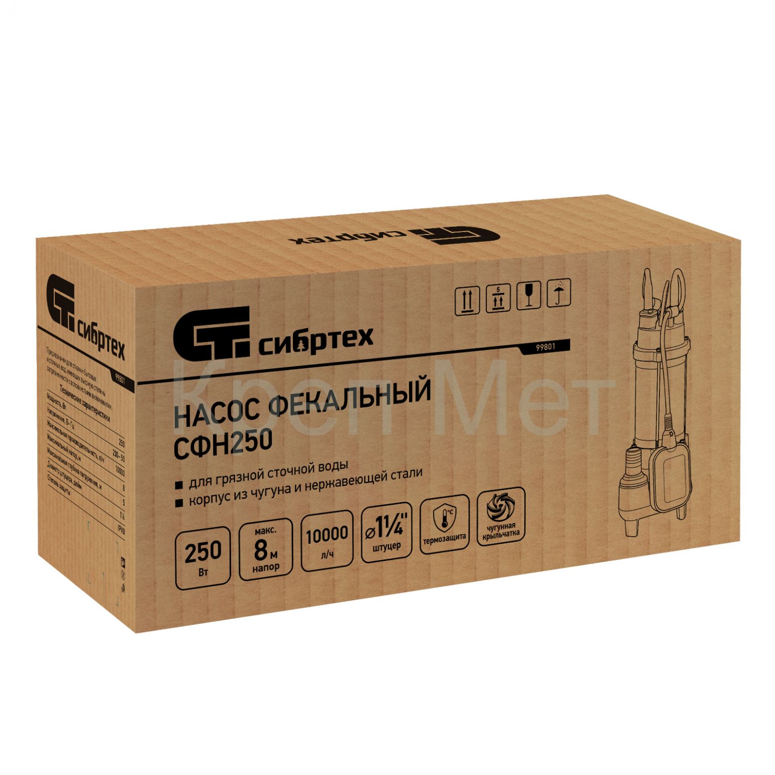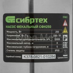 - Фекальный насос СФН250, 250 Вт, напор 8 м, 10000 л/ч Сибртех