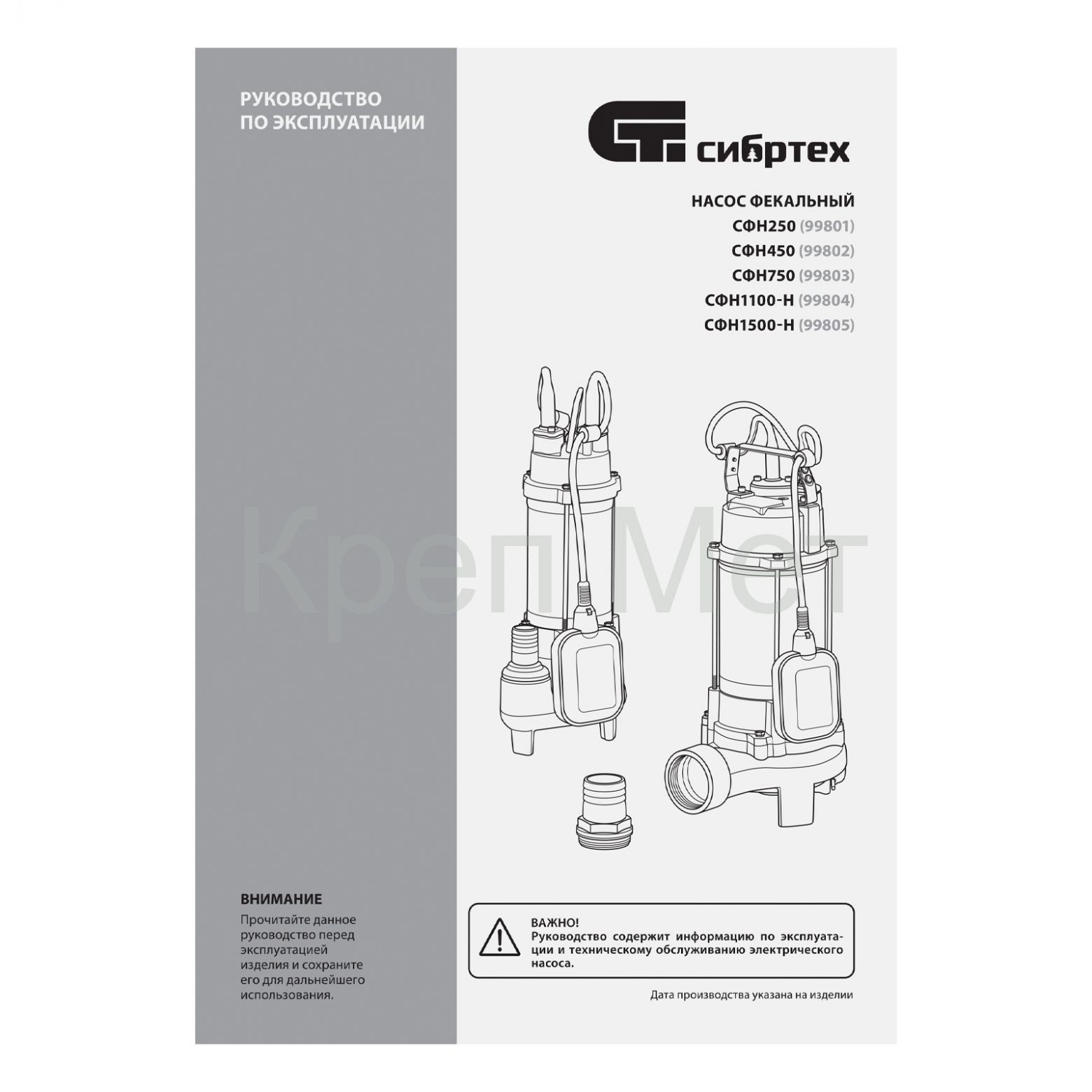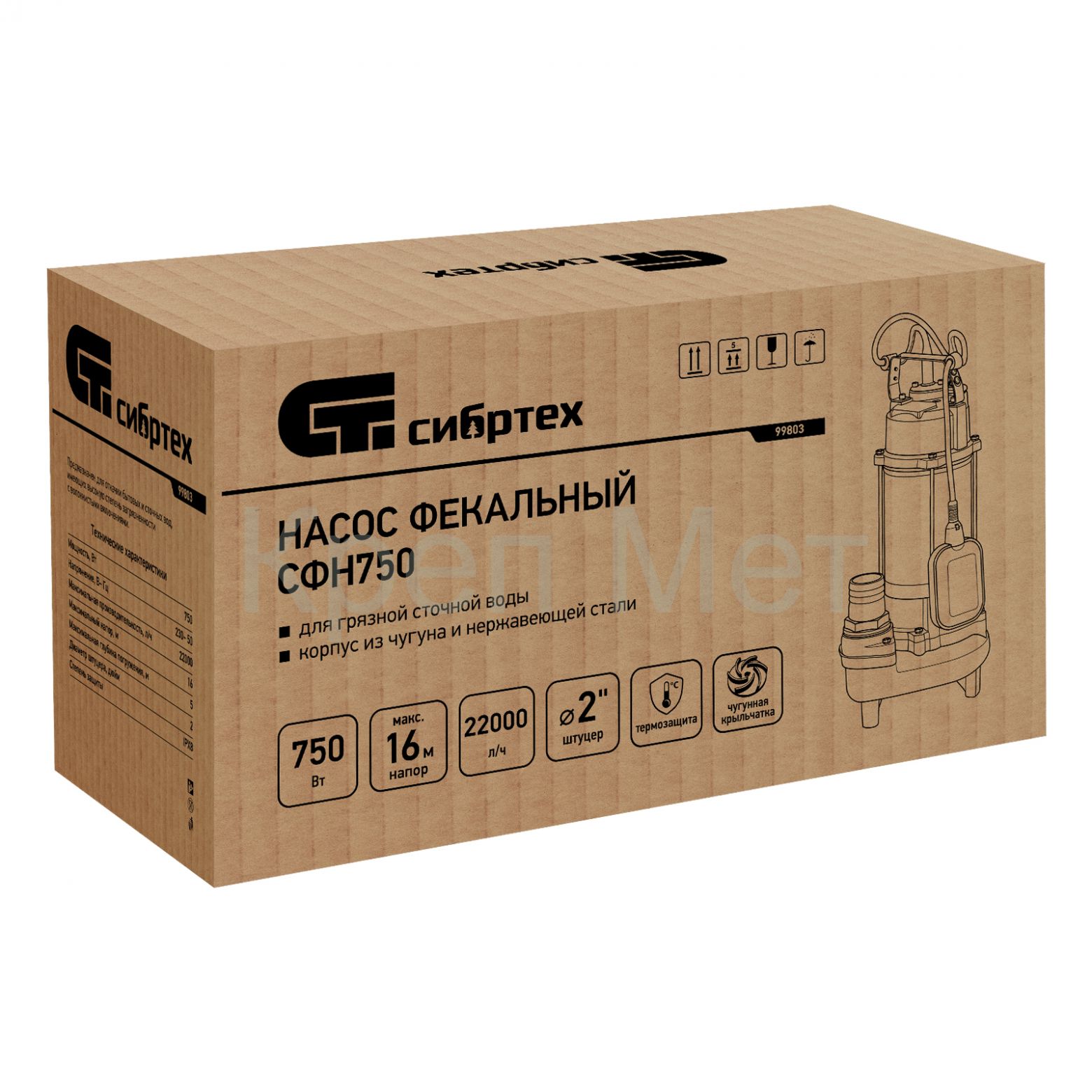 - Фекальный насос СФН750, 750 Вт, напор 16 м, 22000 л/ч Сибртех
