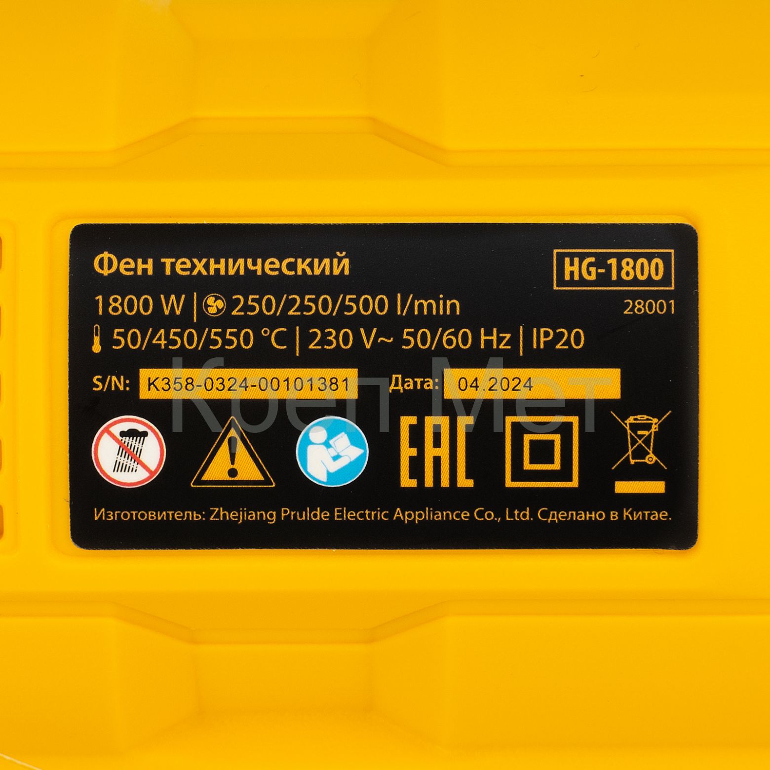 Фен технический Denzel HG-1800 28001 мощностью 1,8 кВт работает в 3 режимах: с температурой 50/450/550 ℃ и производительностью 250/250/500 л/мин соответственно. Используется в качестве источника горячего воздуха для нагрева и просушивания различных материалов, снятия лакокрасочных покрытий, сварки изделий из пластика, дезинфекции поверхностей, а также при проведении слесарных работ, ремонта и строительства. Набор стандартных опций без лишнего функционала обеспечивает идеальное соотношение цены и качества, делает инструмент оптимальным вариантом для бытового применения.