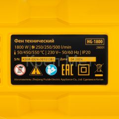 - Фен технический HG-1800, 1800 Вт, 3 режима Denzel