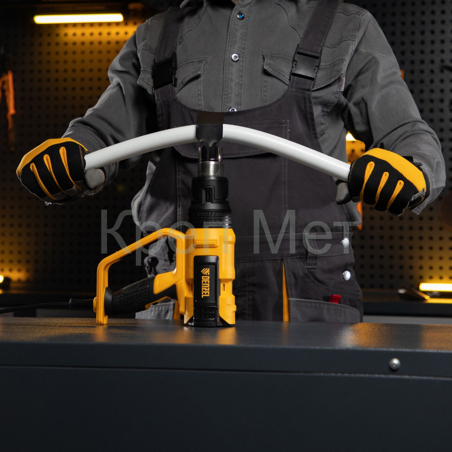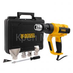 Профессиональный технический фен Denzel HG-2000E 28007 мощностью 2000 Вт, с 2 режимами и LCD дисплеем, предназначен для нагрева и сушки различных соединений и поверхностей. Применяется при снятии лакокрасочных покрытий, удалении старого линолеума и плитки, пайке металла и сварке пластика, разморозке труб, а также в процессе других задач в быту и на строительных объектах.,Высокая мощность двигателя 2 кВт обеспечивает производительность 250-500 л/мин. Максимальная рабочая температура составляет 650 ℃. Надежный и долговечный нагревательный элемент с керамическим каркасом устойчив к продолжительной эксплуатации.