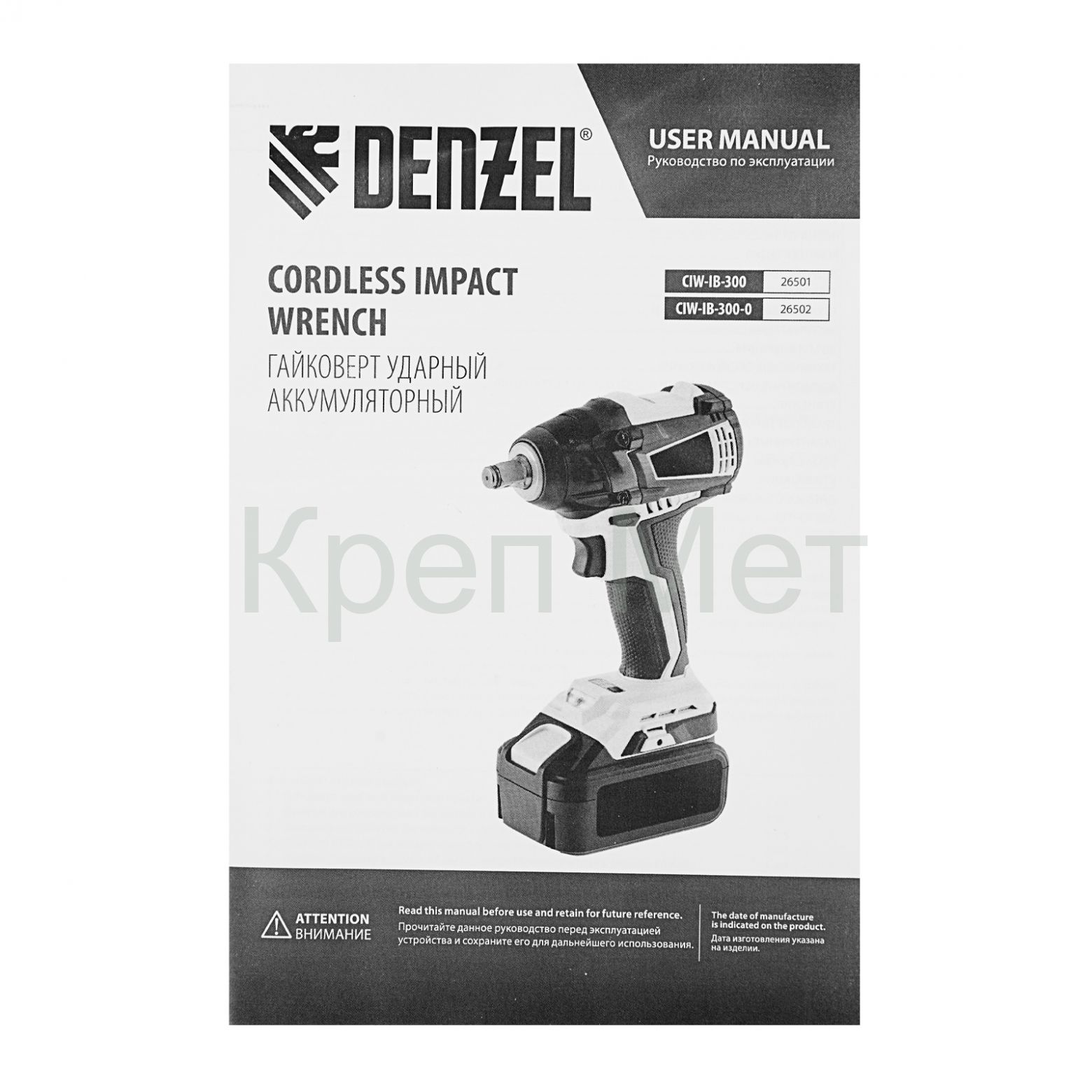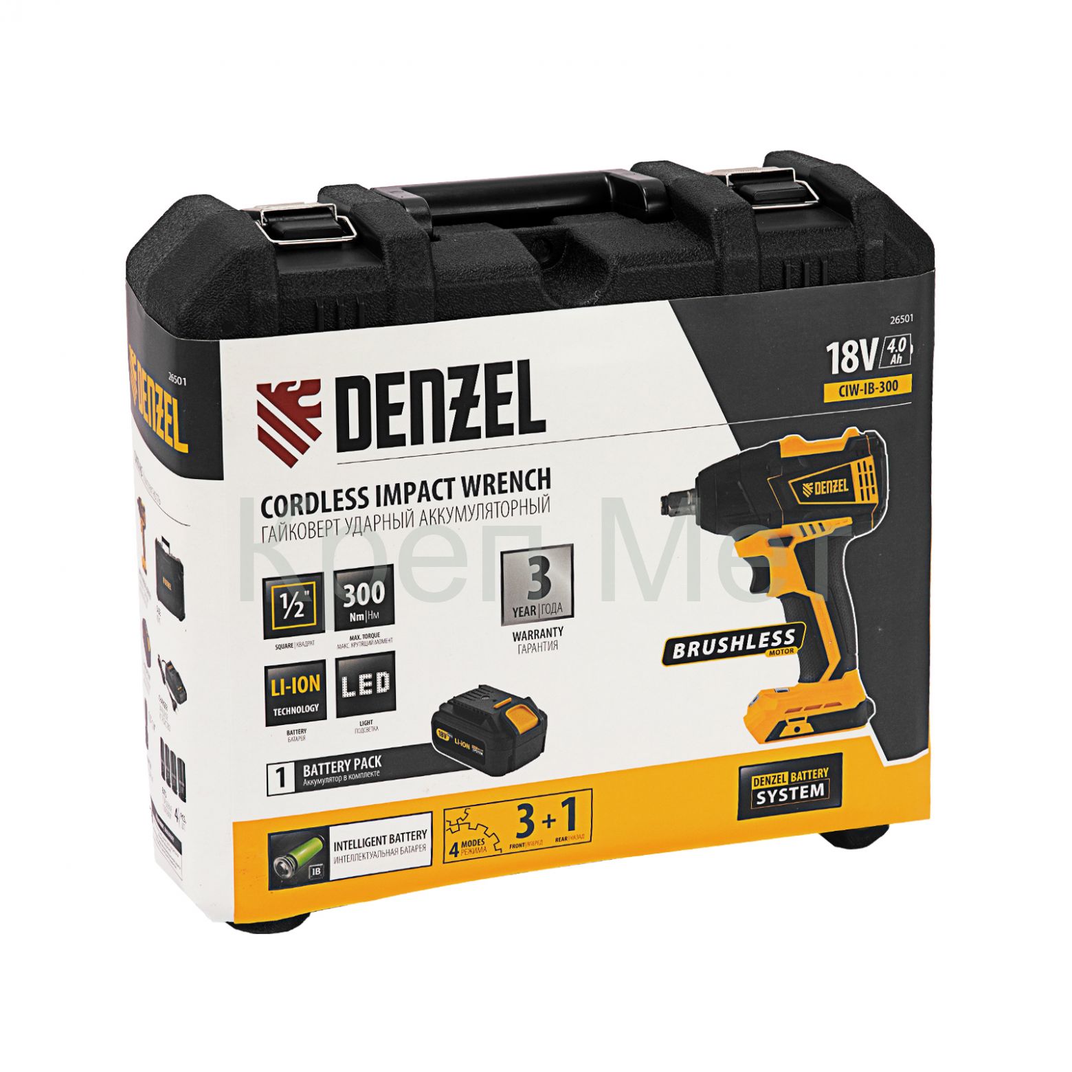 - Гайковерт ударный аккумуляторный бесщет CIW-IB-300, Li-ion, 18В, 300Нм Denzel