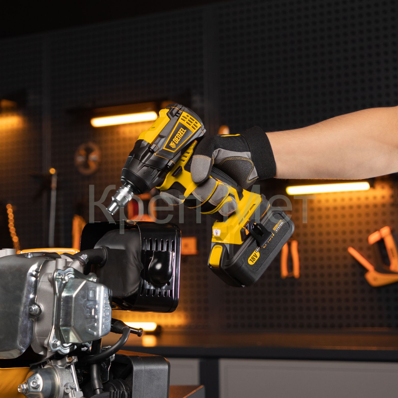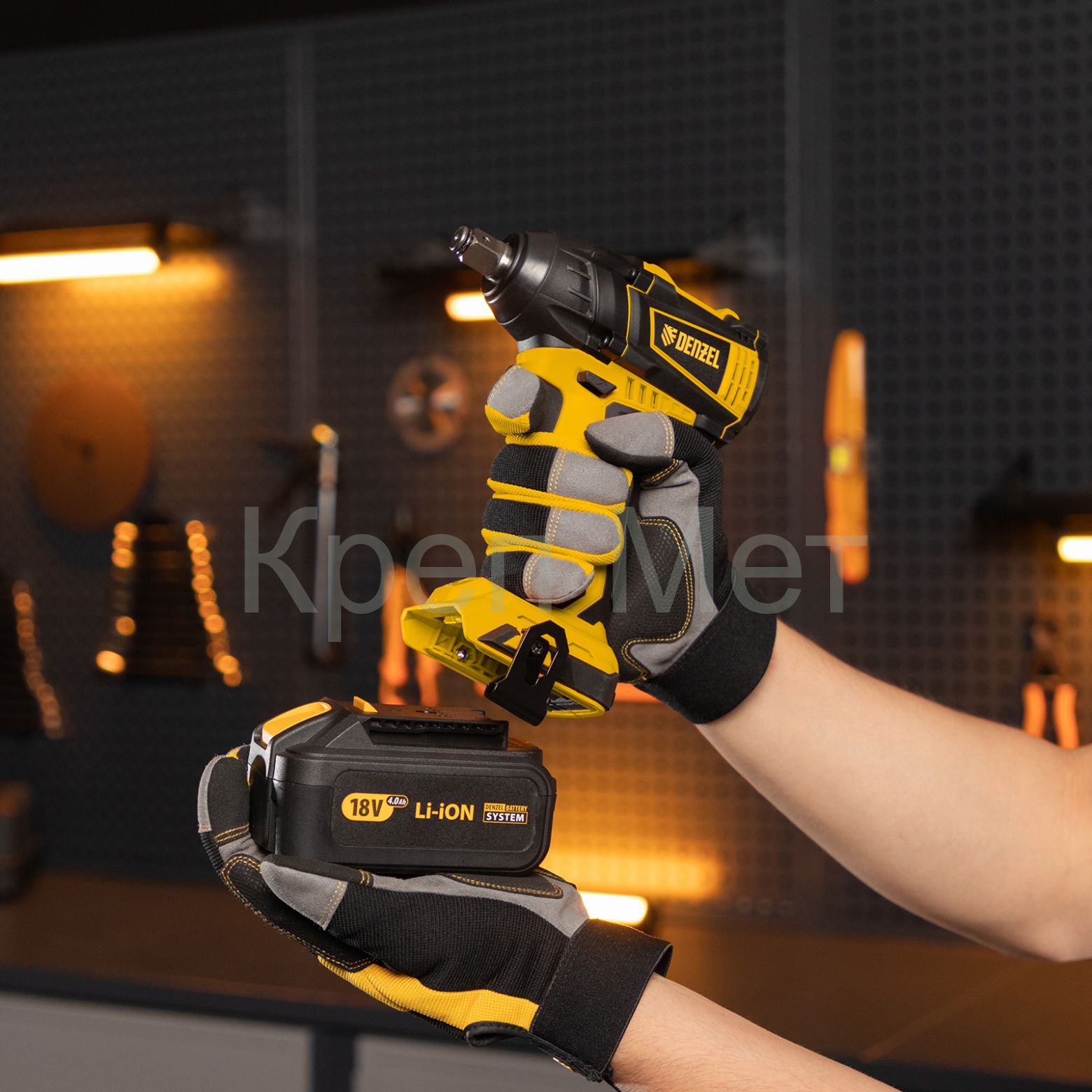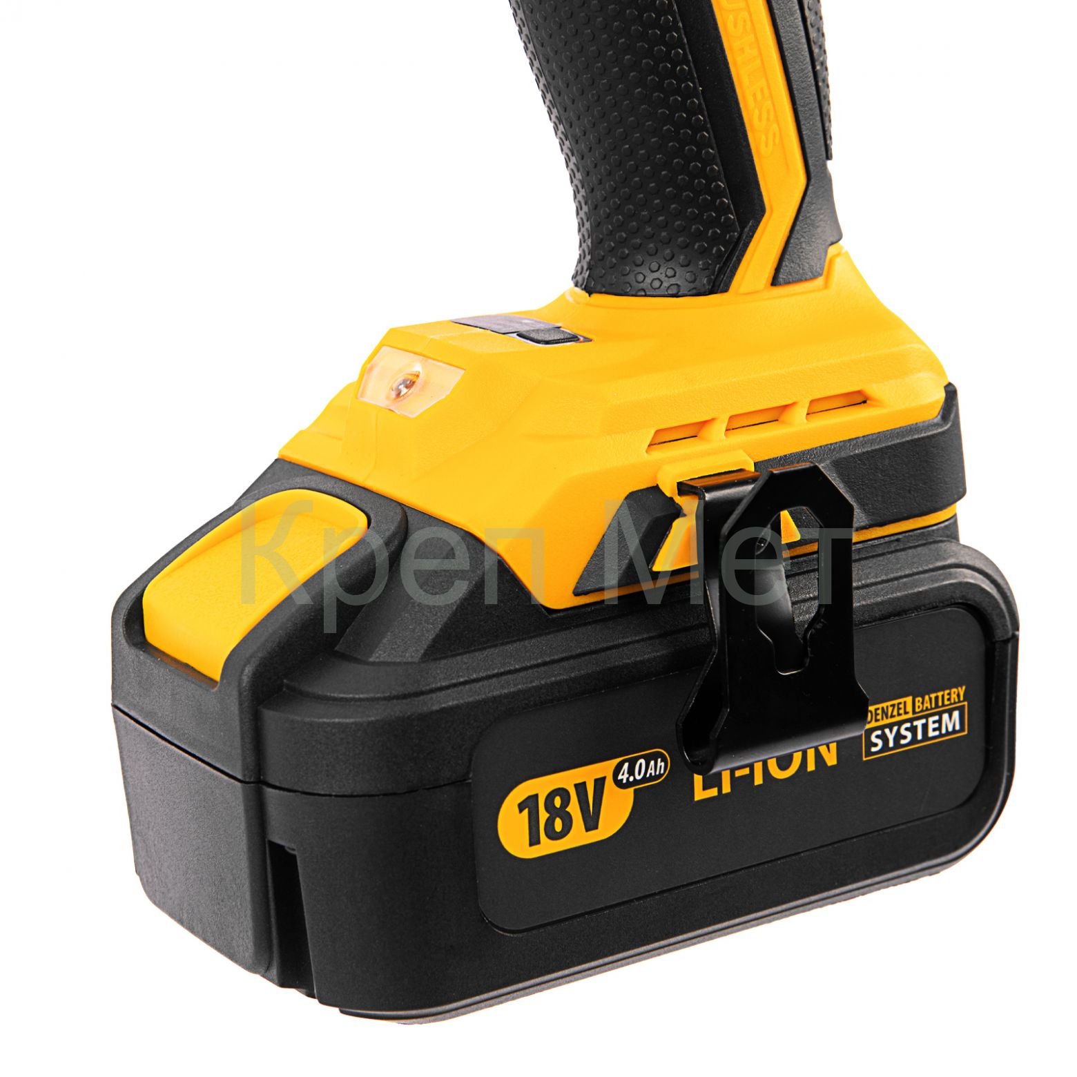 - Универсальность — аккумулятор 4 А/ч Li-ion совместим с любым инструментом 18V Denzel battery system серии IB.