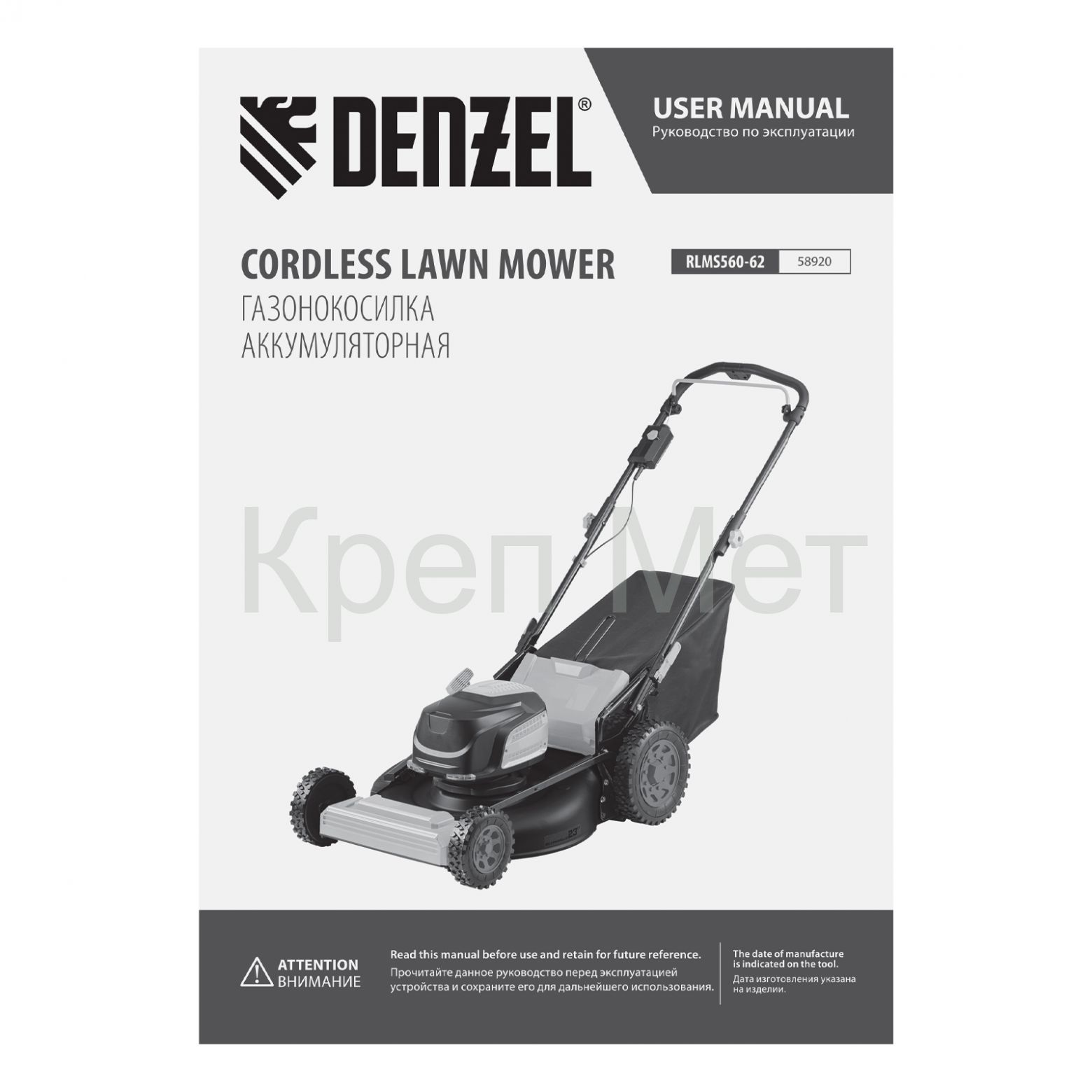 - Газонокосилка аккумуляторная бесщет., RLMS560-62, привод, 560 мм, Li-ion, 62В Denzel
