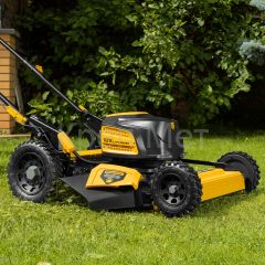 - Легкое управление — благодаря независимому приводу на задние колеса включенную косилку не нужно толкать.