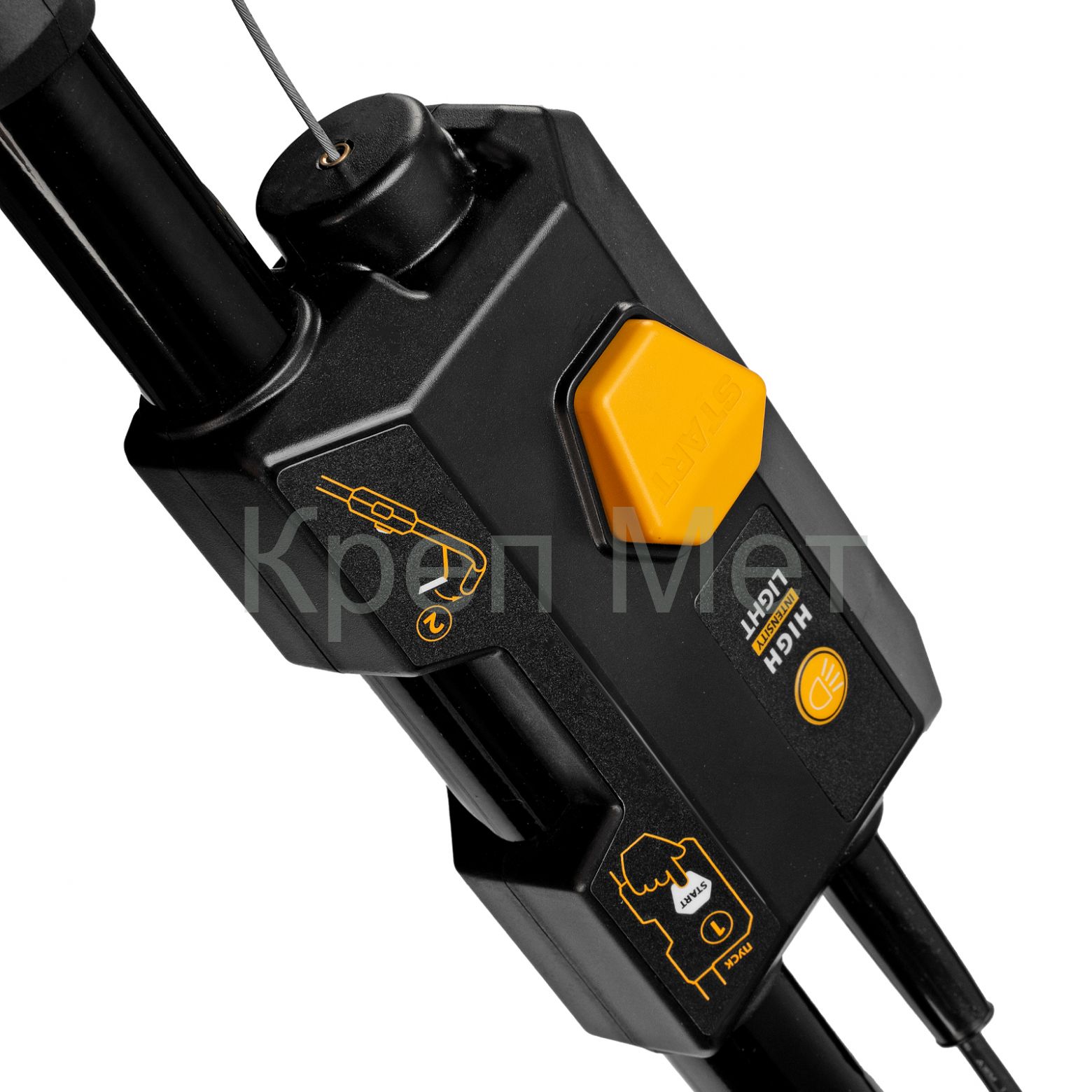 - Эффективное скашивание в условиях недостаточной освещенности — производитель предусмотрел 2 LED-фары в передней части корпуса.