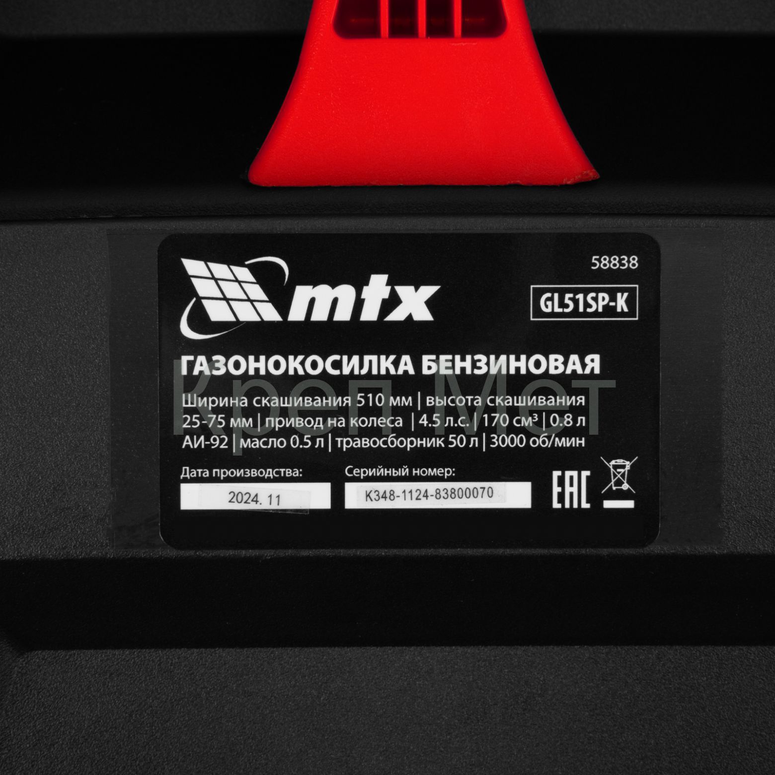 - Газонокосилка бензиновая GL51SP-K, 170 см3, 51 см, привод, 50 л// MTX
