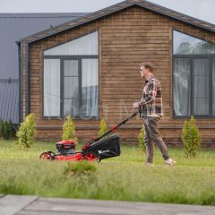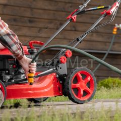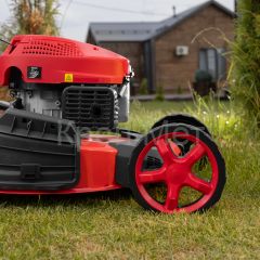 Бензиновая газонокосилка MTX GL51SP-K 58838 с двигателем объемом 170 см³, приводом на колеса и травосборником объемом 50 л обеспечивает ширину скашивания 51 см. Предназначена для кошения травы на газонах и лужайках, оптимальна для ухода за приусадебным участком небольшой площади. Высота скашивания регулируется в диапазоне 25-75 мм (предусмотрено 7 уровней) — можно привести в порядок спортивную площадку, лужайку для отдыха и т.д. Четырехтактный двигатель мощностью 4,5 л.с. позволяет эффективно решать поставленные задачи.