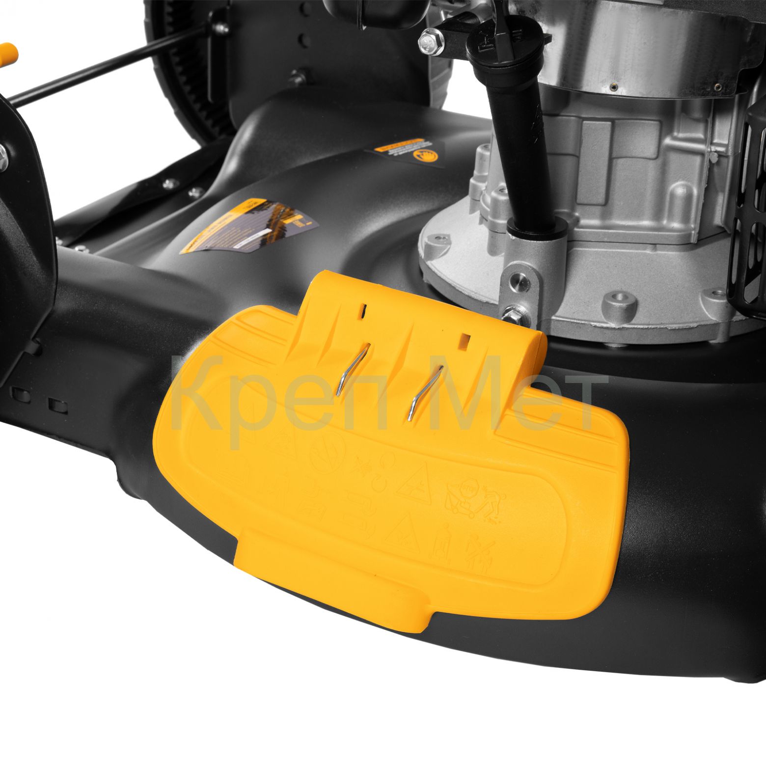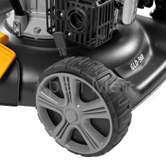 • Быстрая очистка — удалять грязь и остатки травы из внутренних лопастей нетрудно, т.к. косилка оборудована штуцером для подключения шланга.
