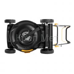 • Удобный выбор режима работы — за счет отсутствия травосборника переключаться между мульчированием и боковым выбросом проще, т.к. не нужно устанавливать заглушки.