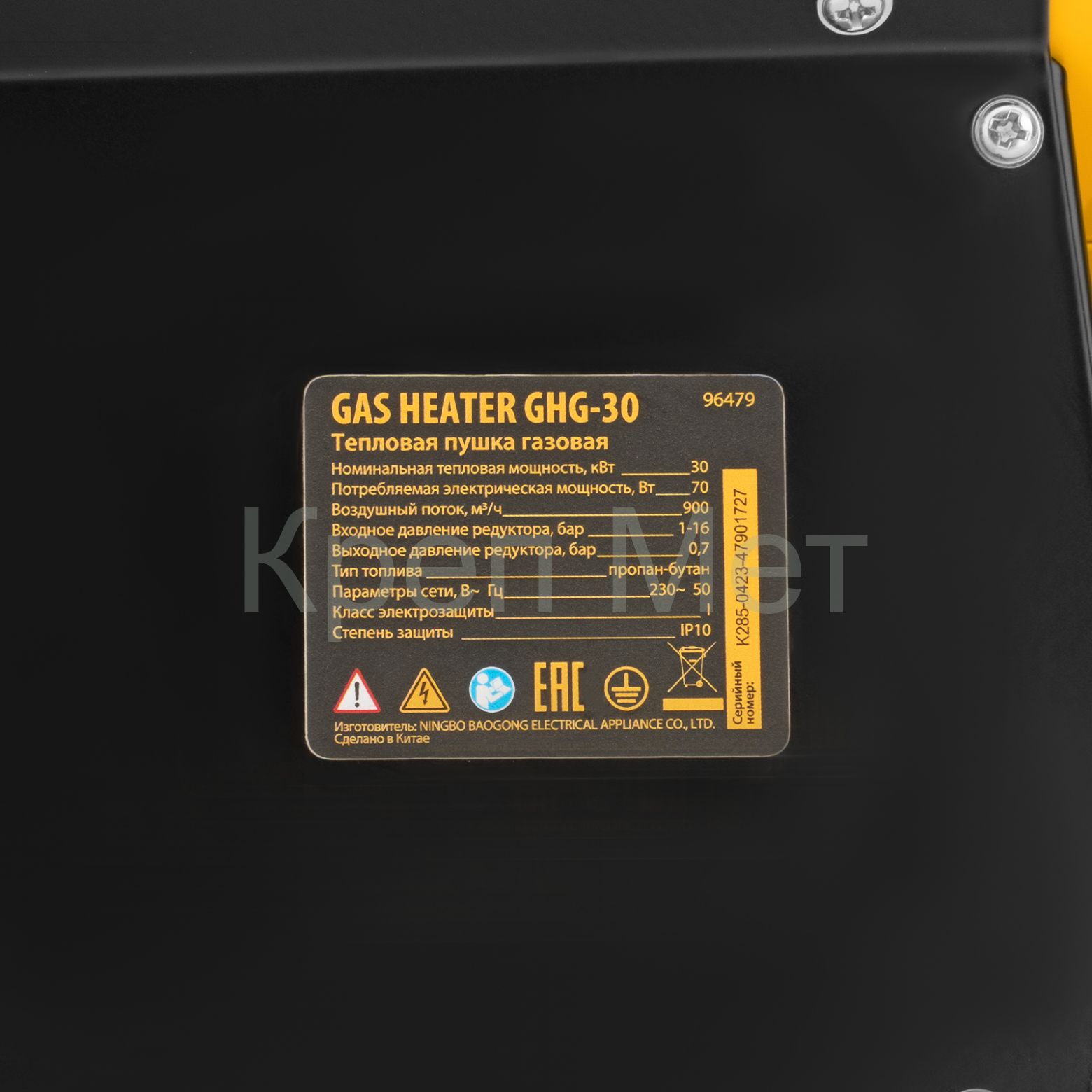 - Газовая тепловая пушка GHG-30, 30 кВт, 900 м3/ч, пропан-бутан Denzel