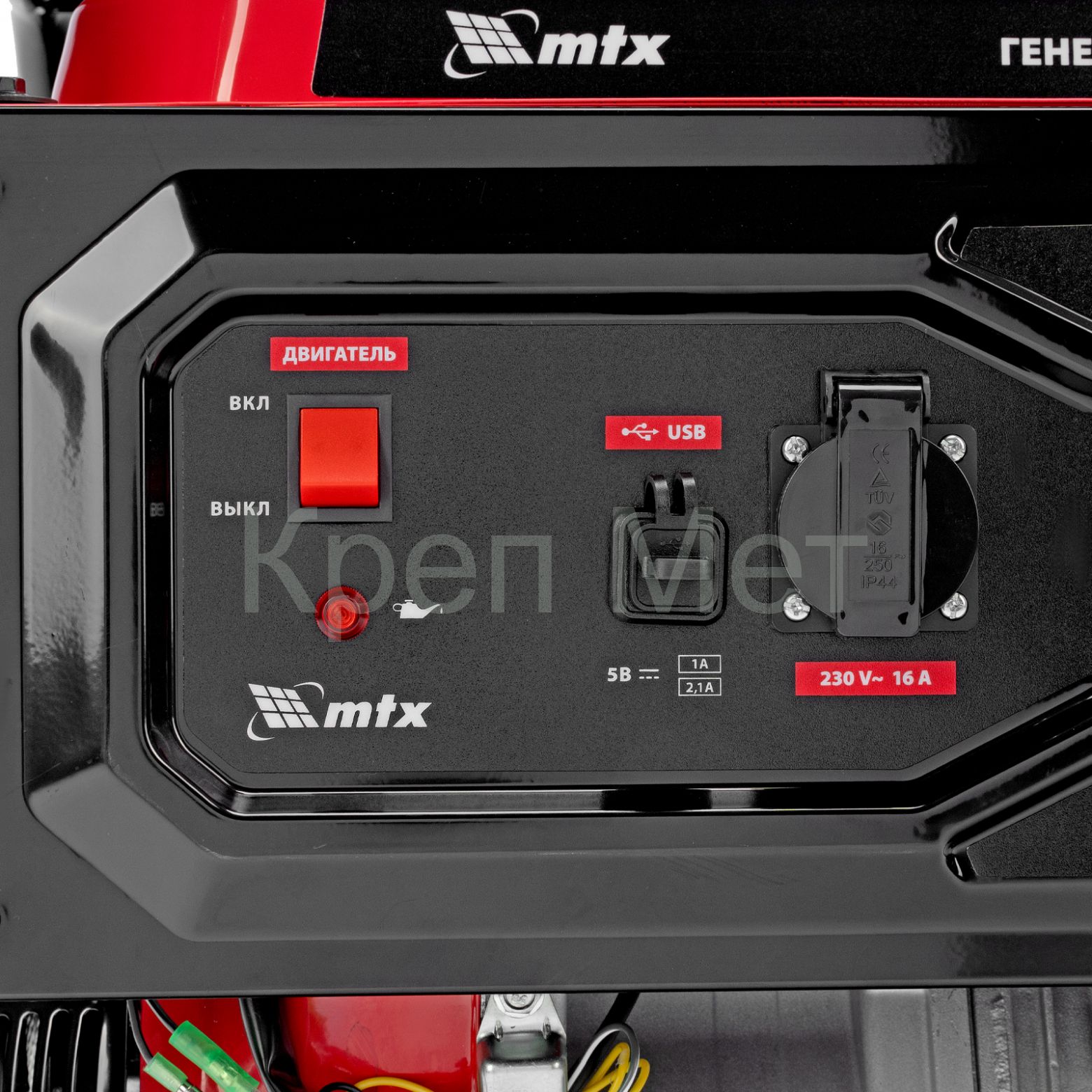 Бензиновый генератор MTX RS-7000 946135 максимальной мощностью 6 кВт, с ручным стартером, поддерживает напряжение 230 В и обеспечивает функционирование бытовой техники, электроинструмента, осветительных приборов и других потребителей в случае отсутствия электросети или перебоев в ее работе. Стабилизатор напряжения AVR защищает чувствительные приборы от поломки. Для подключения потребителей служат 2 розетки 230 В/16 А, для питания мощной техники предназначена силовая розетка 230 В/32 А. На панели управления также предусмотрен выход постоянного тока USB/TYPE-C 5 В, позволяющий заряжать смартфоны, планшеты и другие гаджеты. Генератор пригодится владельцам загородных участков.