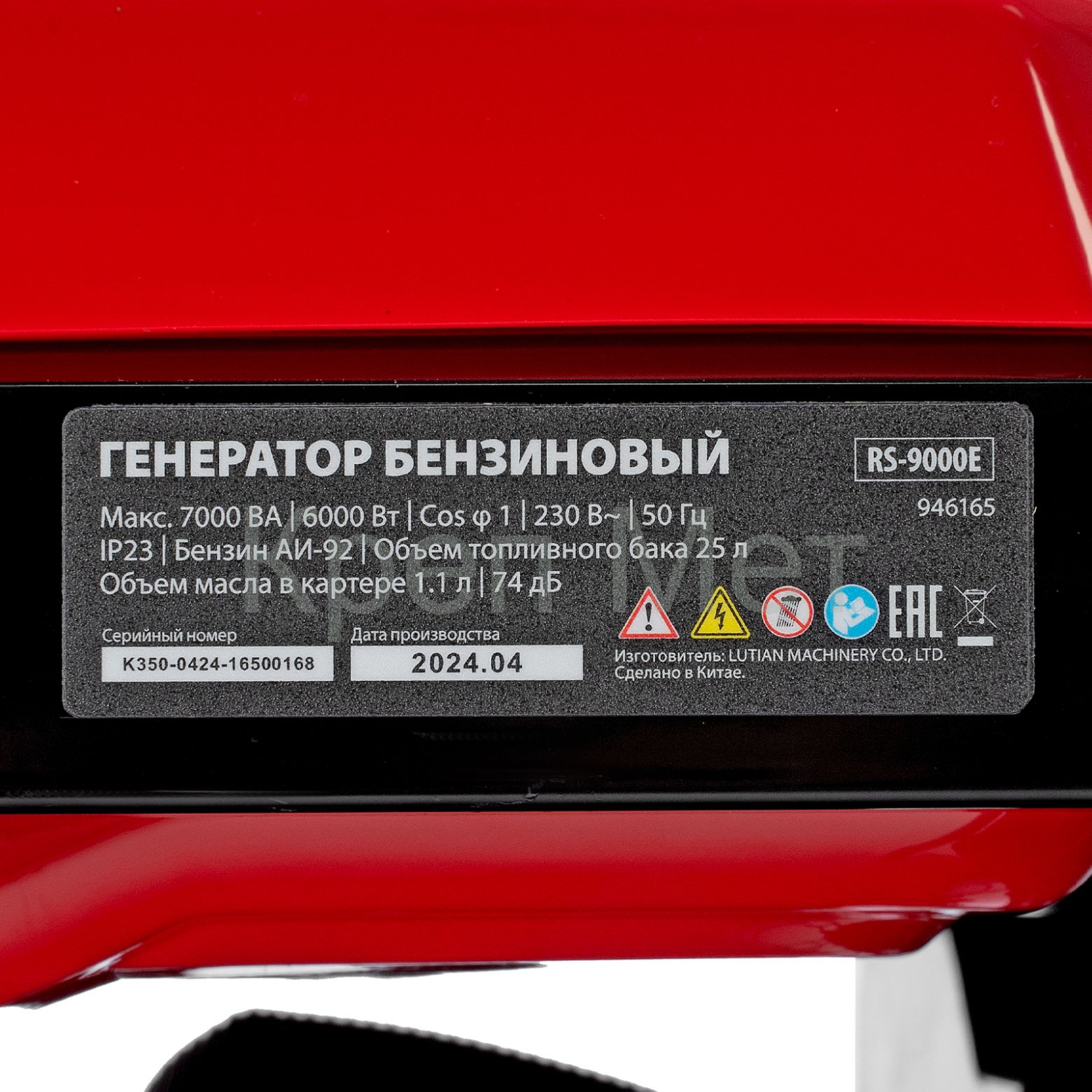 - Генератор бензиновый RS-9000E, 7 кВт, 230В, электростартер MTX