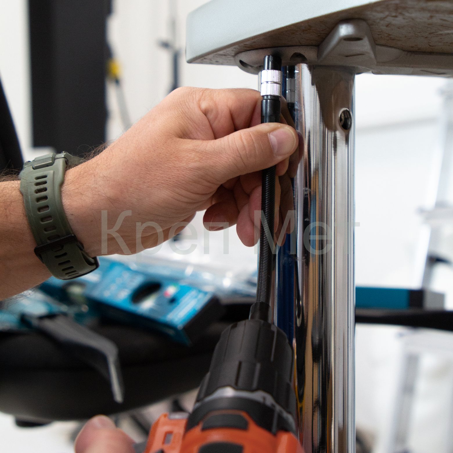• Гибкий стержень — переходник позволяет получить доступ к участкам, расположенным под углом к оси вращения патрона шуруповерта.
