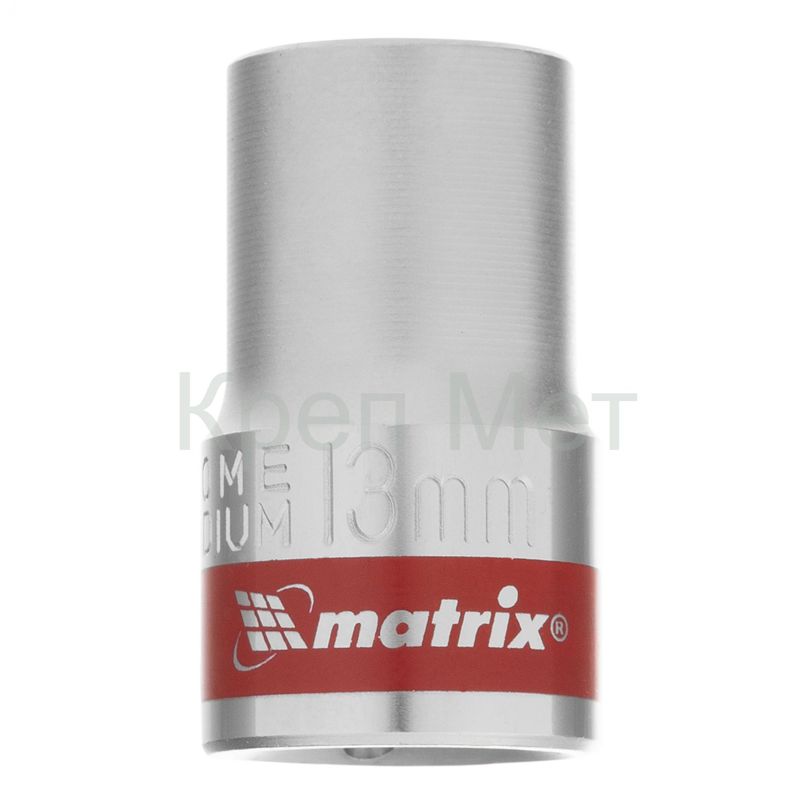Головка торцевая, 13 мм, двенадцатигранная, CrV, под квадрат 1/2, хромированная Matrix