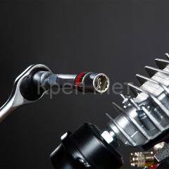 - Прочность — торцевая головка выполнена из высококачественной хромованадиевой стали, твердость рабочей части составляет 42 HRC.