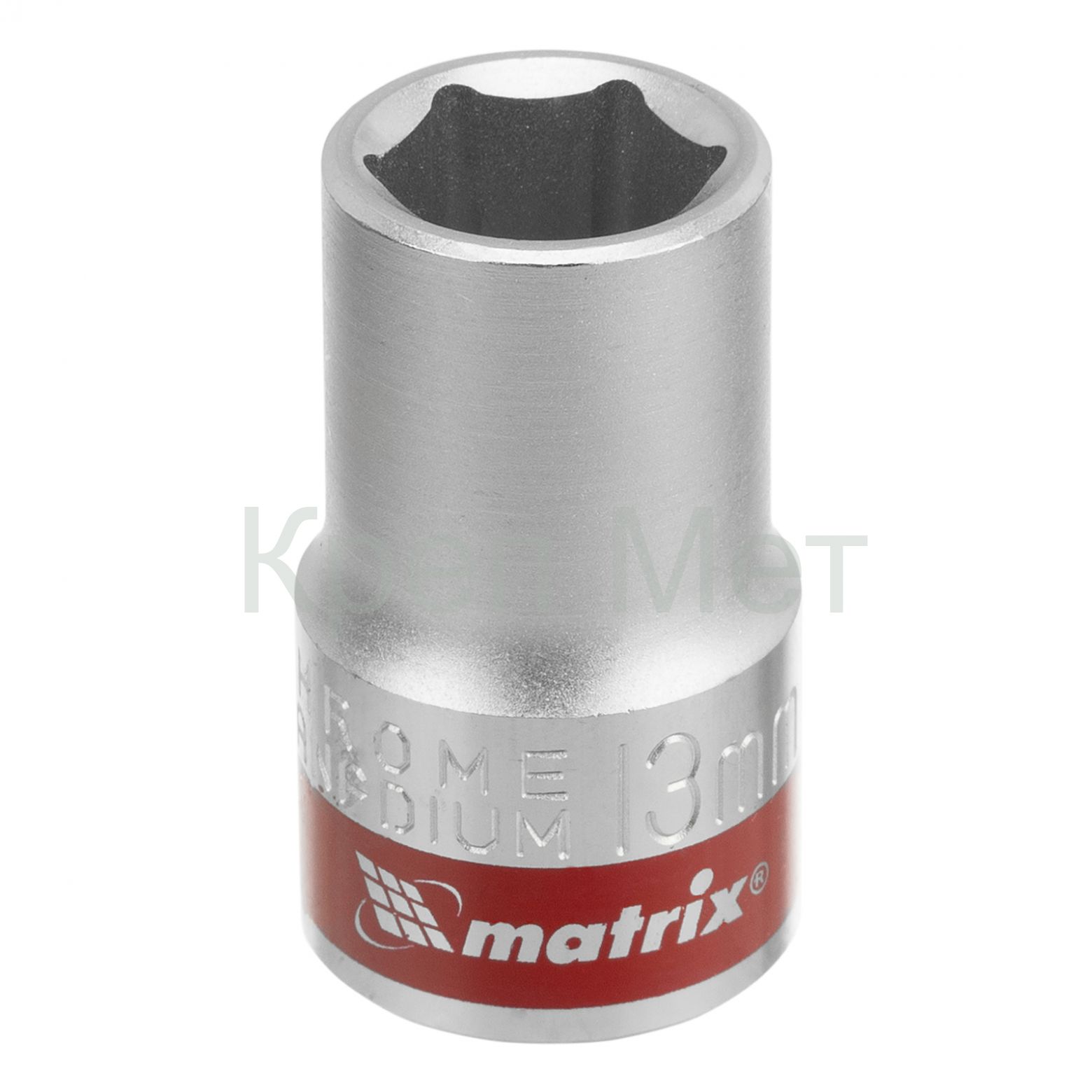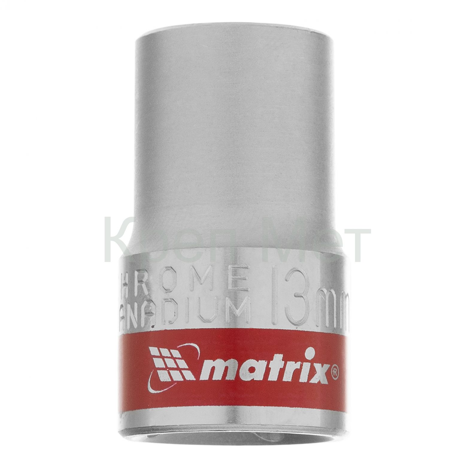 Головка торцевая, 13 мм, шестигранная, CrV, под квадрат 1/2, хромированная Matrix