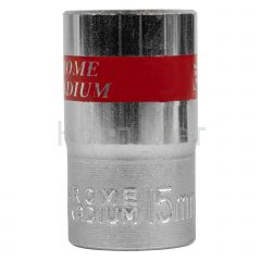 Головка торцевая, 15 мм, двенадцатигранная, CrV, под квадрат 1/2, хромированная Matrix