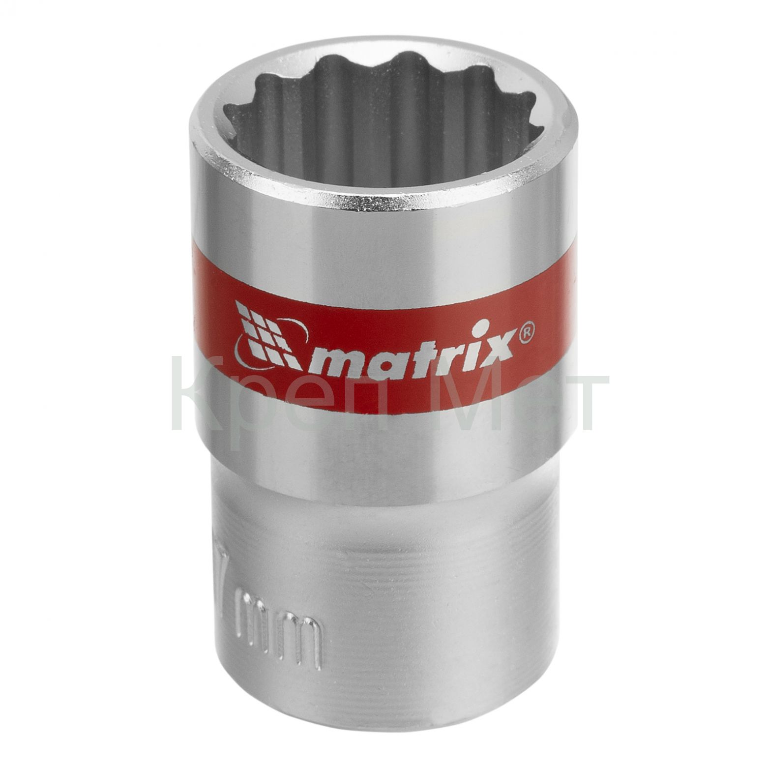 - Головка торцевая, 17 мм, двенадцатигранная, CrV, под квадрат 1/2, хромированная Matrix