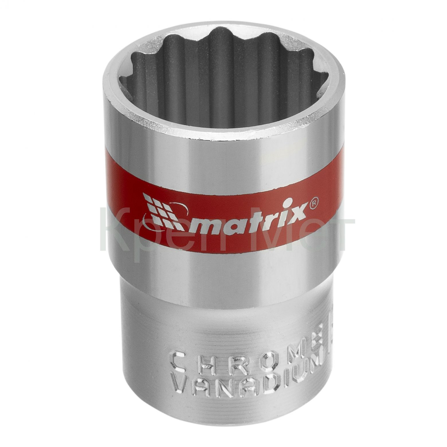 - Головка торцевая, 19 мм, двенадцатигранная, CrV, под квадрат 1/2, хромированная Matrix