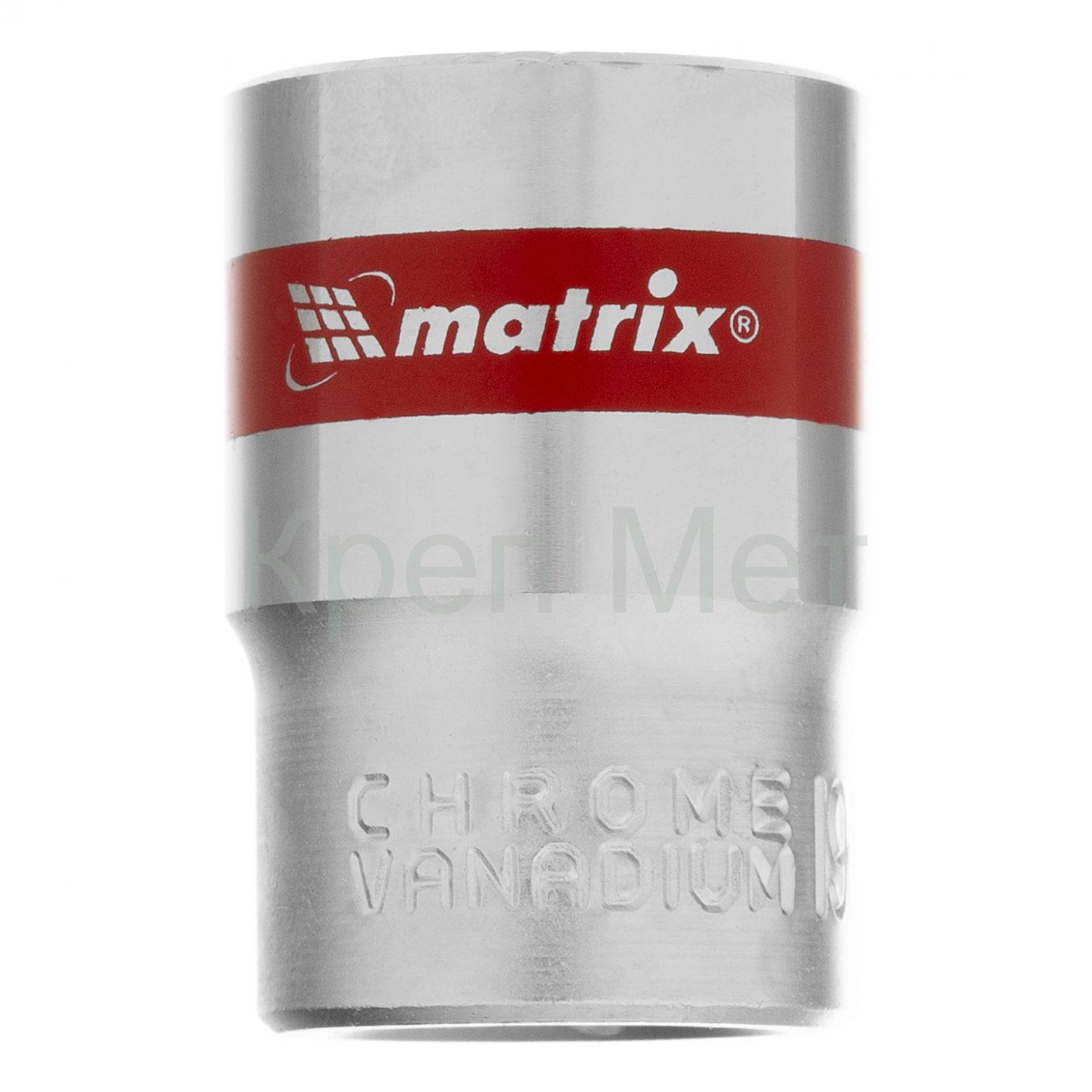 Головка торцевая, 19 мм, двенадцатигранная, CrV, под квадрат 1/2, хромированная Matrix