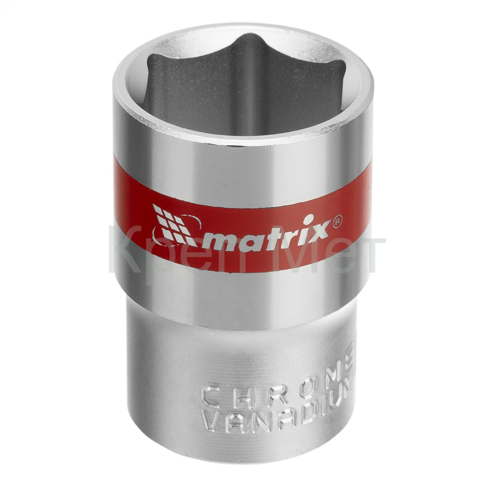 Головка торцевая, 19 мм, шестигранная, CrV, под квадрат 1/2, хромированная Matrix