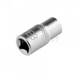 Торцевая головка Е8 Stels 13867 из стали CrV, с посадочным квадратом 1/4 дюйма, применяется для закручивания и откручивания резьбовых крепежей. Позволяет производить монтаж болтов и шурупов с Е-профилем. Головка с профилем «внутренний TORX» будет полезна для ремонта автомобилей на станции техобслуживания или в гараже.