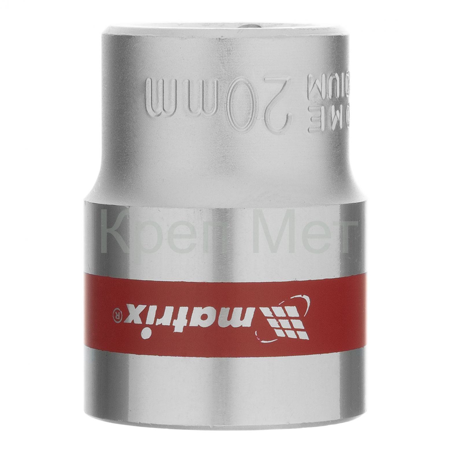 - Головка торцевая, 20 мм, шестигранная, CrV, под квадрат 1/2, хромированная Matrix