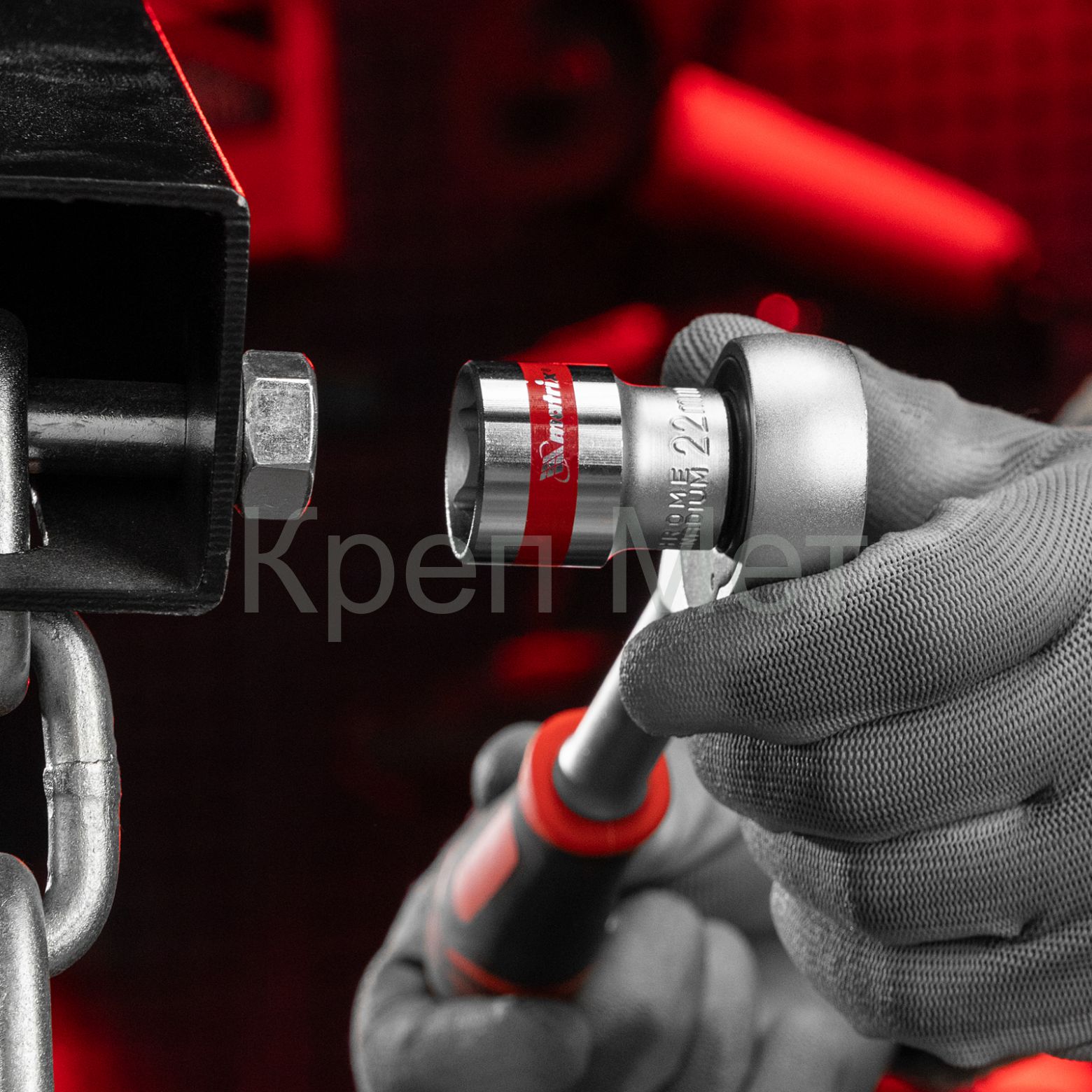 - Быстрый поиск среди других насадок — торцевая головка маркирована красной полосой, на корпусе указан типоразмер.