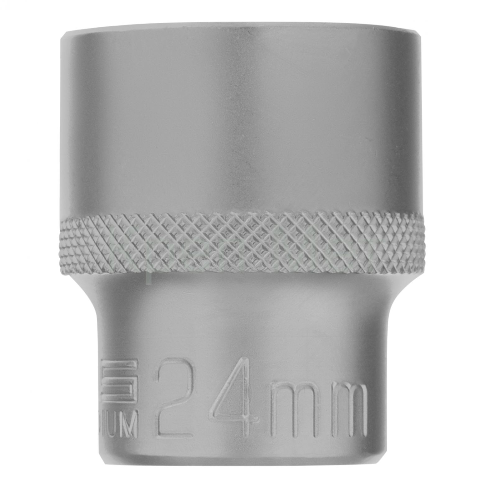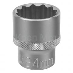 - Головка торцевая, 24 мм, двенадцатигранная, CrV, под квадрат 1/2, хромированная Stels