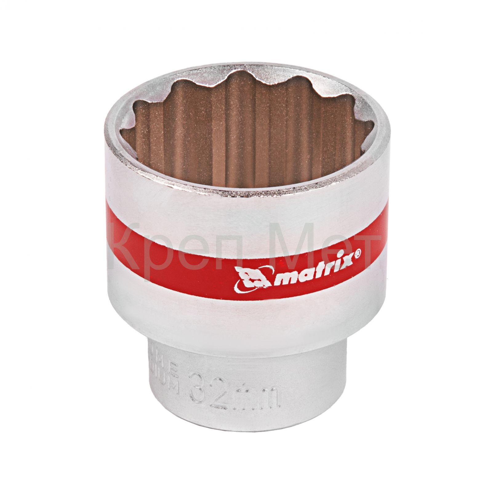 - Головка торцевая, 32 мм, двенадцатигранная, CrV, под квадрат 1/2, хромированная Matrix