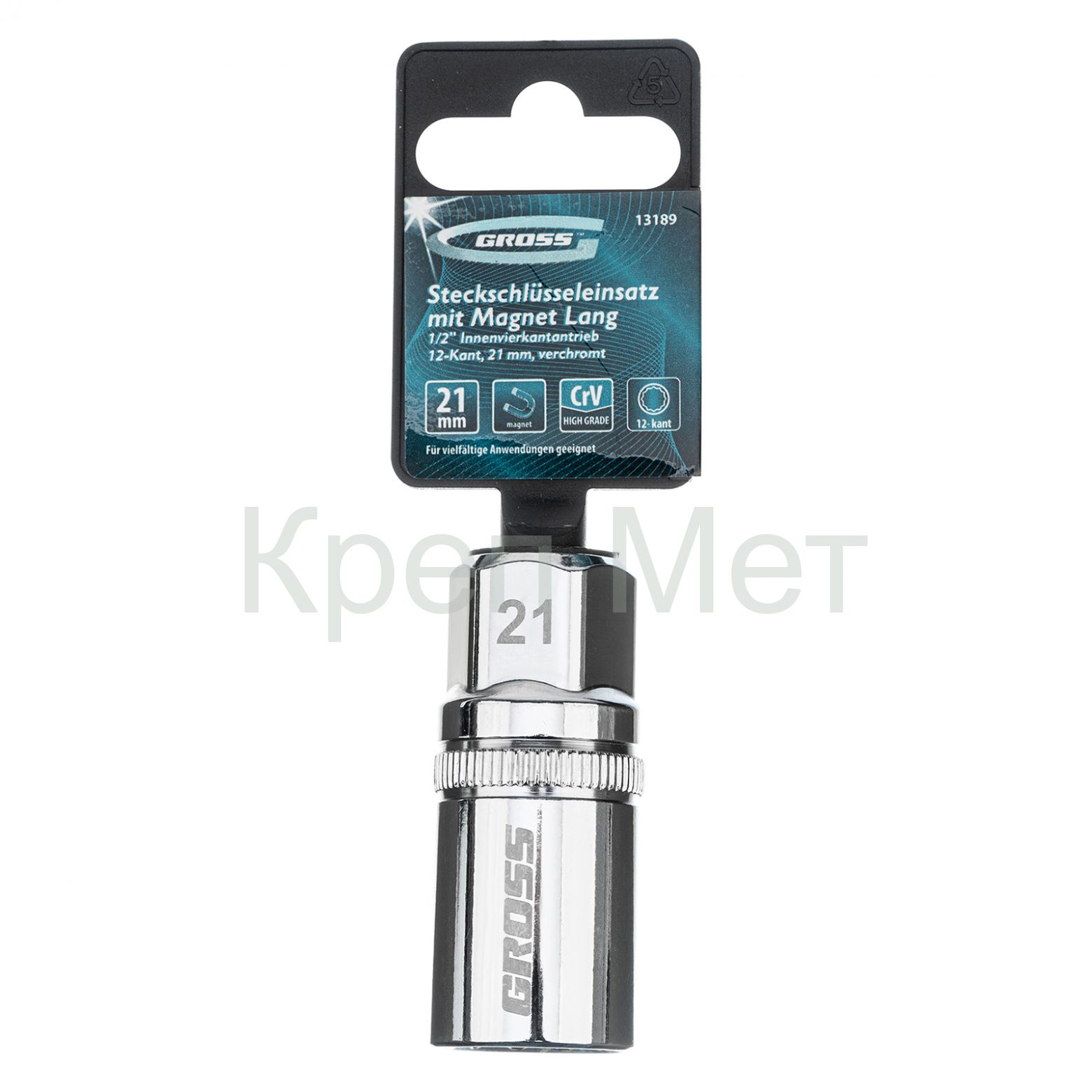 - Головка торцевая свечная, магнитная, двенадцатигранная, 21 мм, под квадрат 1/2 Gross