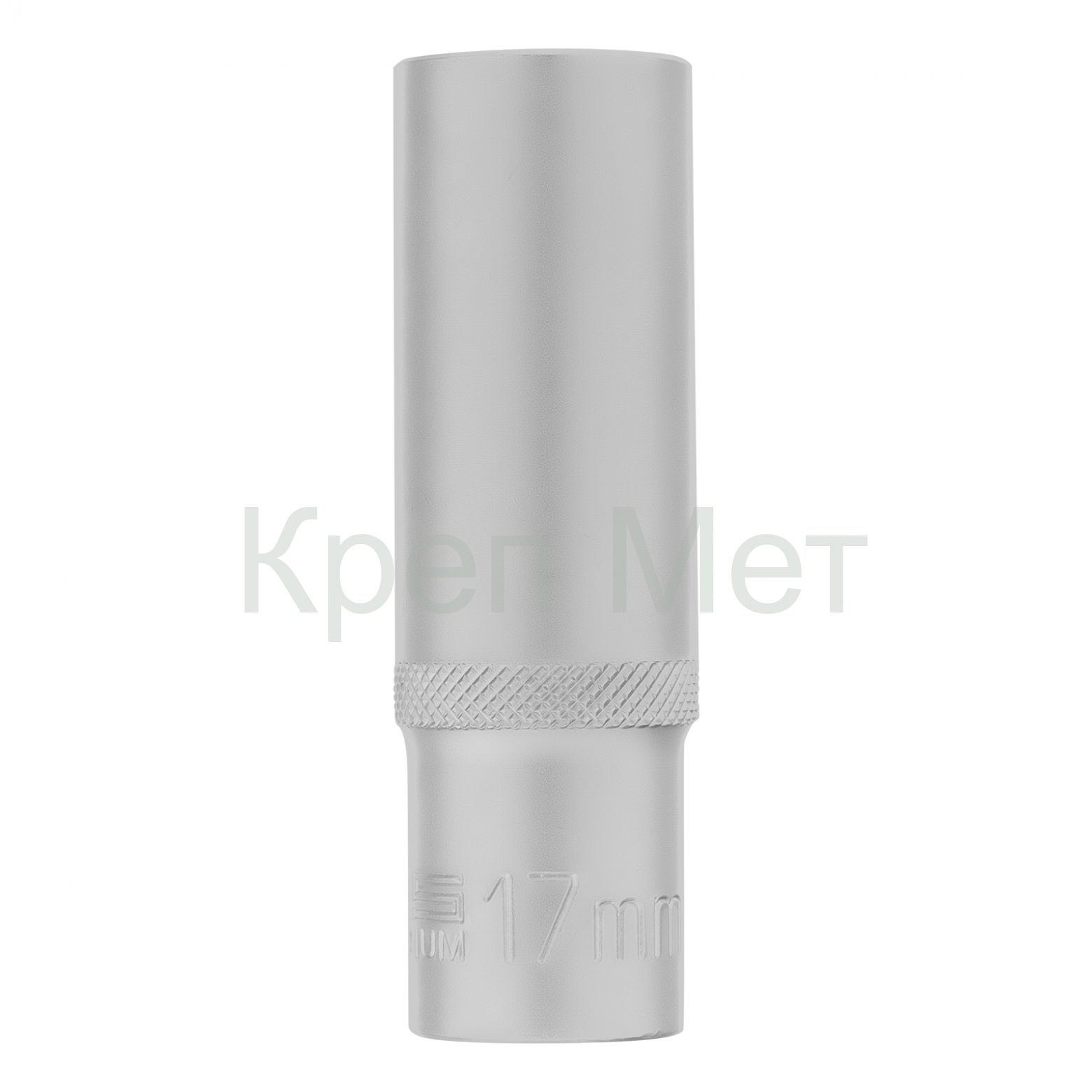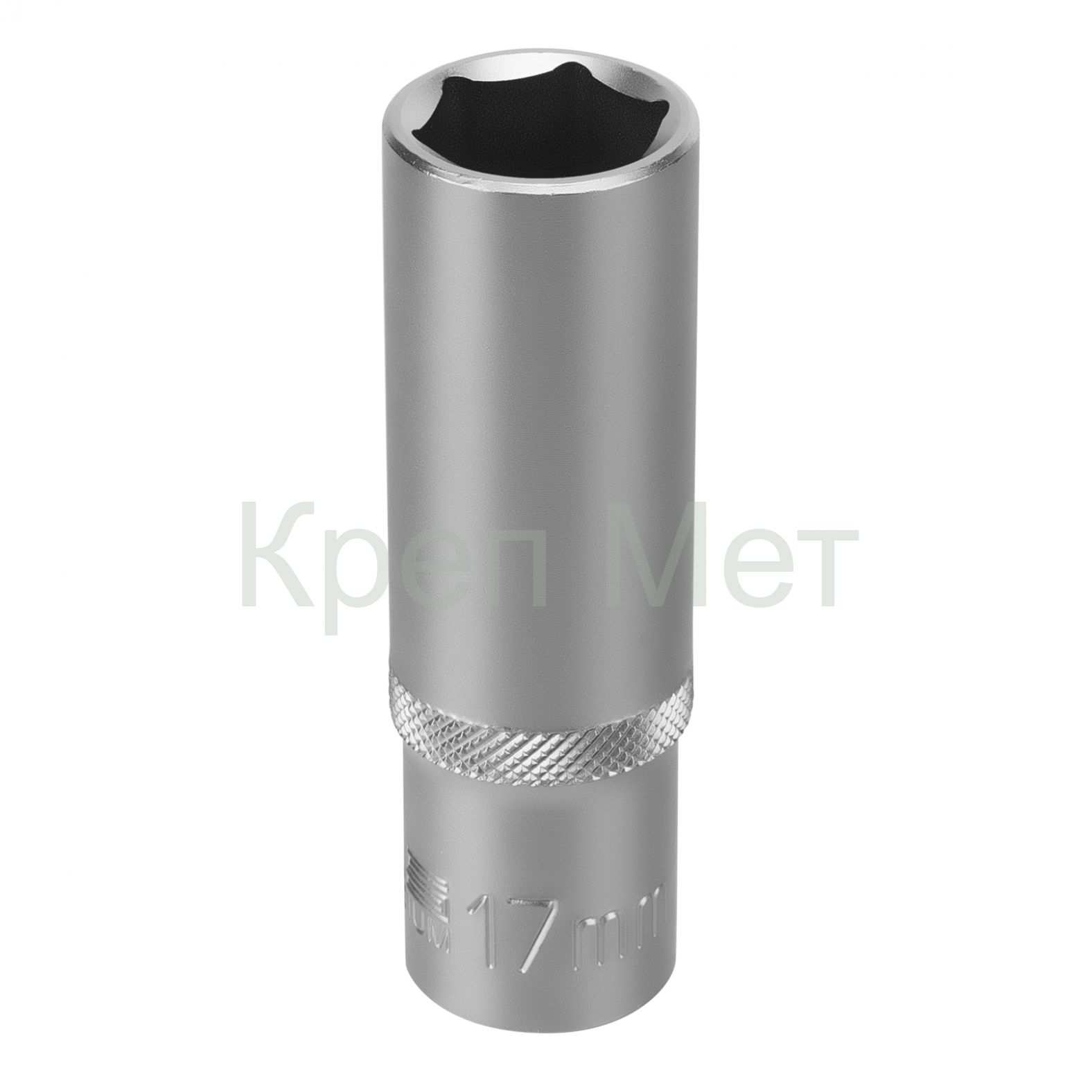 - Головка торцевая удлиненная, 17 мм, шестигранная, CrV, под квадрат 1/2 Stels