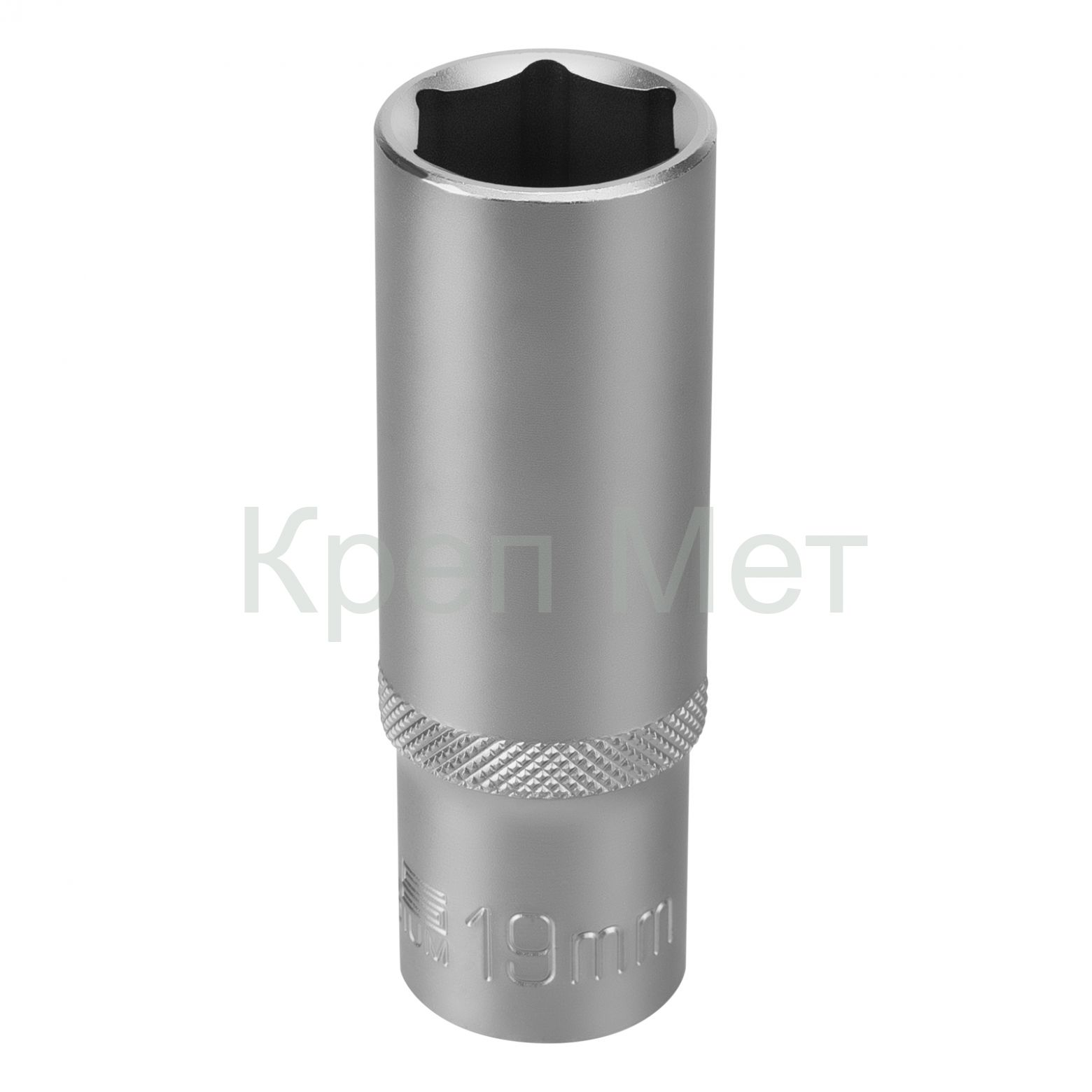- Головка торцевая удлиненная, 19 мм, шестигранная, CrV, под квадрат 1/2 Stels